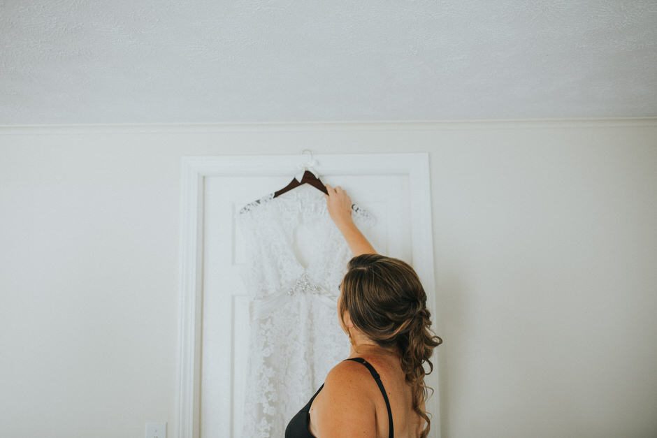 I wish there was a cool story about my dress, but it all happened so casually. I stopped into a bridal shop on my lunch break to see how far in advance I would have to start looking. I saw a few dresses I liked on the floor and asked if I could try a few on to get an idea before coming back with family and friends. I fell in love with the first one I put on and walked out with it that day. It was a sample dress, which really just means other people have tried it on. I didn’t want to spend thousands on something I would wear once. It was altered a tiny bit and professionally cleaned. It was an Allure lace A-line gown, with a champagne underlay and keyhole back. I was so comfortable in it and sad I only got to wear it once….except on our anniversary photo shoots which Rachel has suggested over my idea of having another wedding!