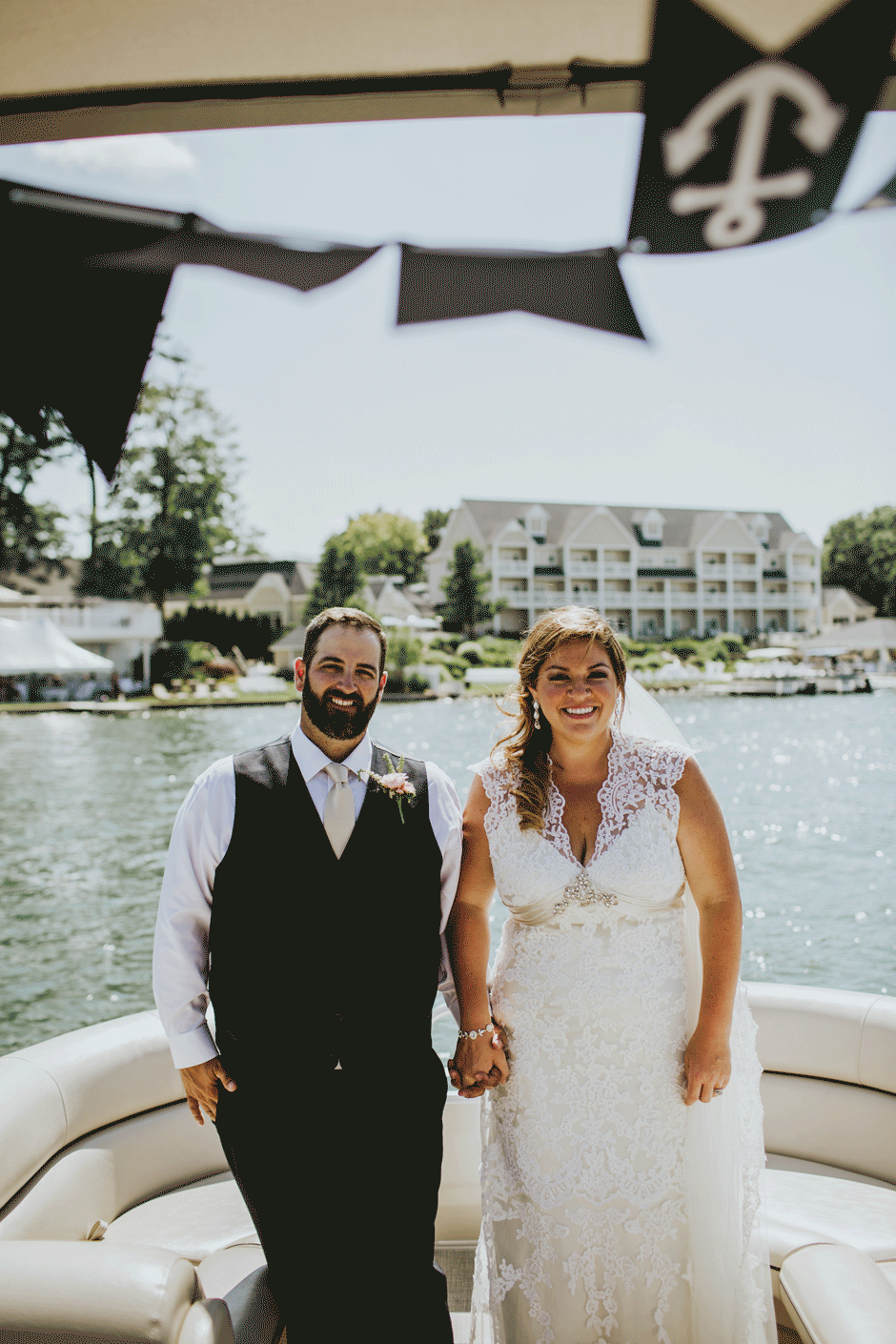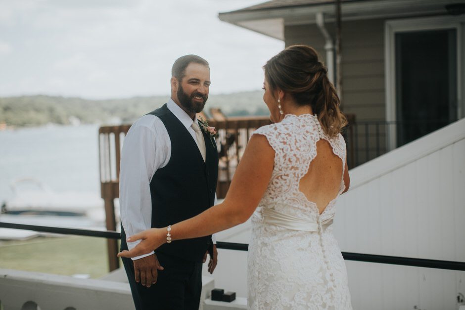 The Bay Pointe Inn was perfect for us. A friend knew someone that got married there and said her wedding looked awesome. It was the only venue we looked at and we booked it the day we saw it. When you know, you know! We liked the idea of a destination wedding but didn’t want to make it too far where our guests had to fly. I never ever pictured us getting married in a banquet hall…we are very laid back and like to have fun, so we wanted something that allowed us to keep the party going. The night before there was a terrible storm that knocked over trees and homes and left 150,000 people without power, including the hotel. I honestly thought our wedding might get canceled. They jumped right into the action and got generators out there and never missed a beat! We had the boathouse rented for the weekend and that allowed us to have 10 friends stay in the house with us. We made a weekend out of it and hosted a party the night before the wedding and the ceremony and reception were also held there. The day after we rented 4 pontoon boats and about 50 of our friends and family stayed to enjoy the lake with us for the weekend. The Bay Pointe was a dream to work with and you could not ask for a more beautiful setting! We love Gun Lake now and will be returning for many years with our family.