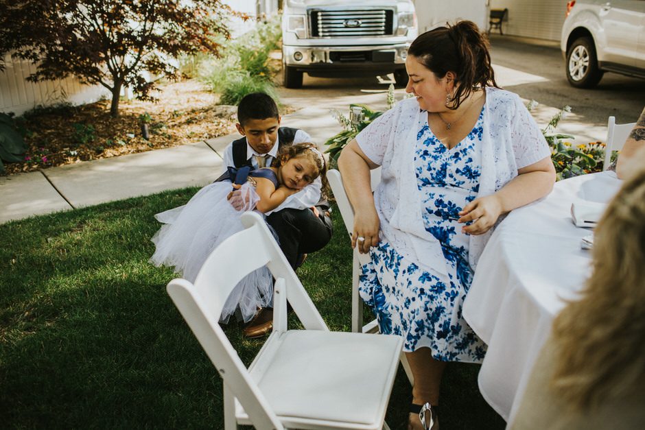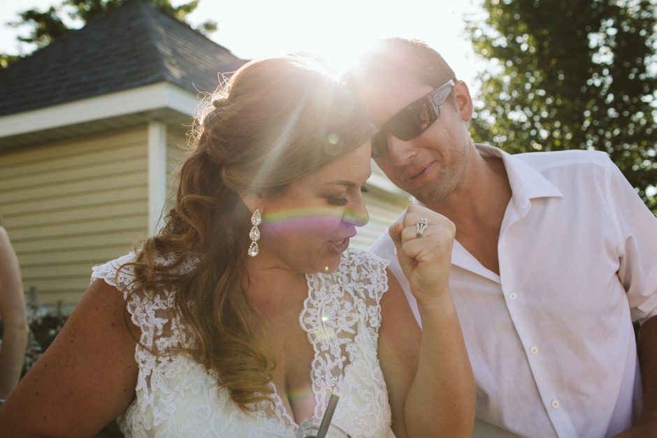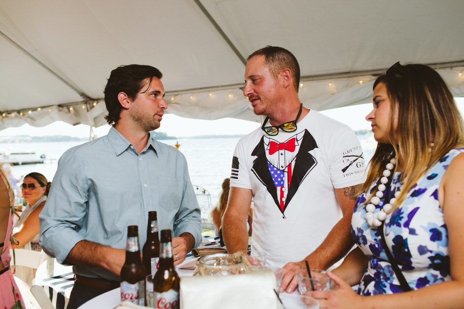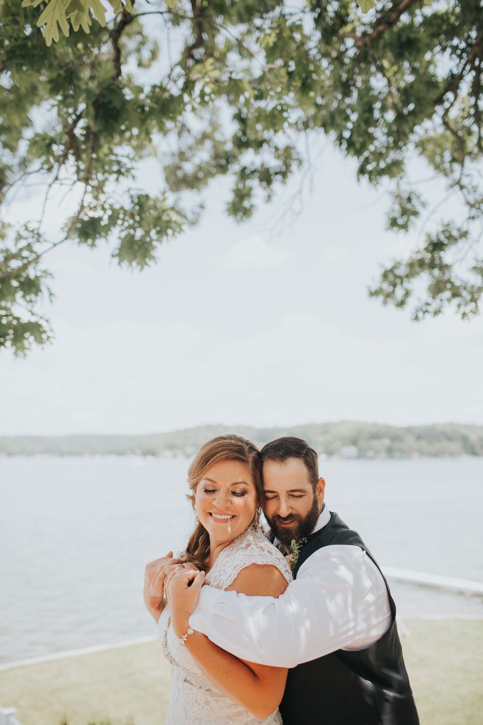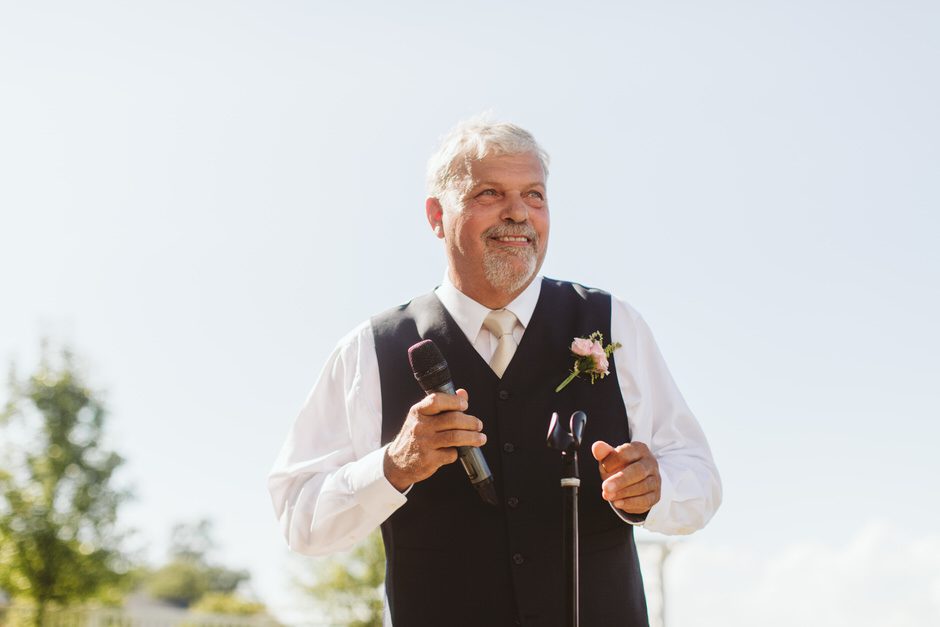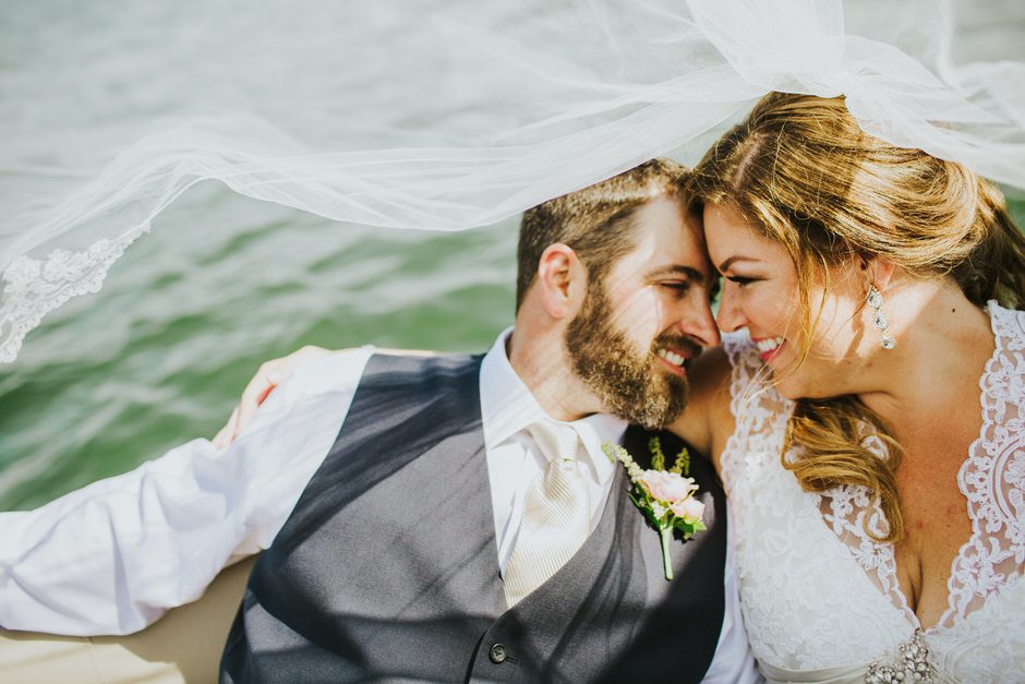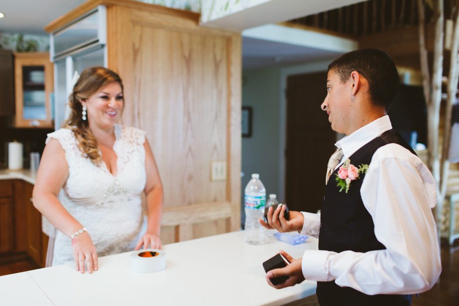 The ceremony was my absolute favorite part of the day. We wanted it to include not only Ryan and I joining our lives and our children’s lives, but also all of our “people”. We did not have a bridal party, so we had our kids alongside us. I asked my best friend from childhood, Erin Roenna to officiate and lucky for us, she agreed! Erin did such an amazing job of incorporating emotion, humor, and sentiment into the perfect ceremony. I don’t think I could have asked for a better ceremony. We performed a sand ceremony to unite our lives and included Jake and Lia. “These grains of sand are now mixed together and can never be separated.” The other thing we did was a “blessing stone ceremony”. All of our guests were given a river rock to hold during our ceremony. At the end, everyone was asked to make a wish or blessing for our marriage on their rock and we all threw them into the lake at the same time. As Erin explained “The ripples that are made in the water represent the love and good wishes not only for this couple but for all the world. For as our ripples cross and recross one another’s, so our love and good wishes touch and retouch all those around us.” We then exited the ceremony on a pontoon boat!