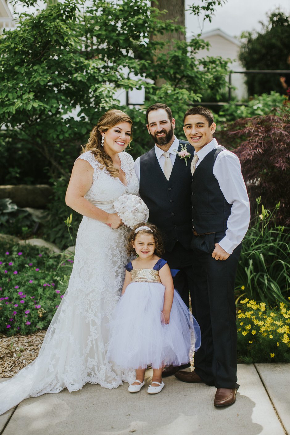 Ryan wore a navy suit that was purchased from Men’s Warehouse and tailored to him. We decided just the vest and tie without the jacket was best since it was July and slightly hot. Every man should have a suit that they feel great in! Ryan doesn’t love to get dressed up, but when the talk of wedding suit/tux came up, he knew right away he wanted to purchase a suit for himself instead of renting. I told him I didn’t mind if he wanted to change into something more comfortable after the pictures, but he stayed in “uniform” all night…I think he liked it!