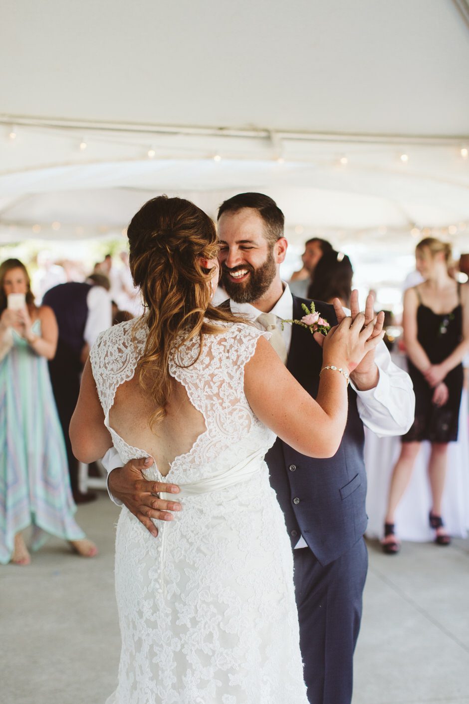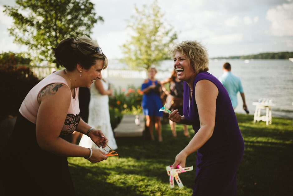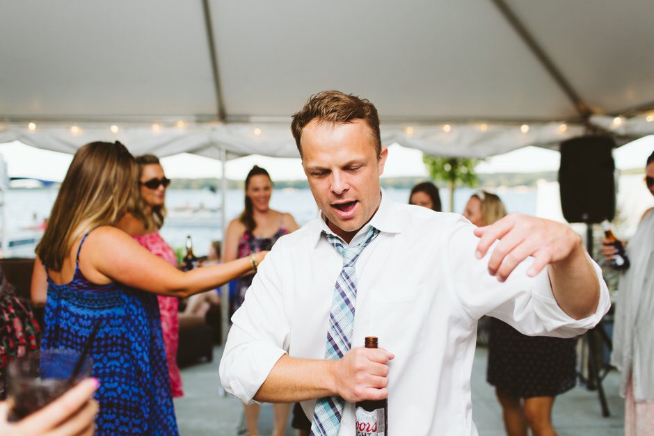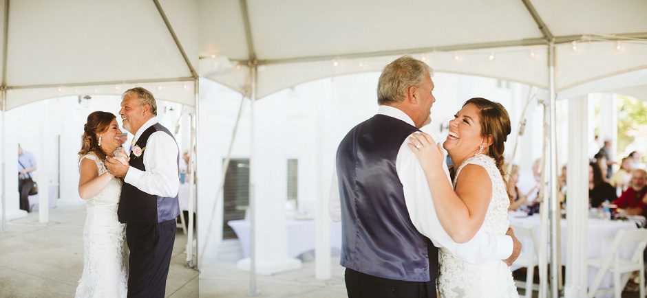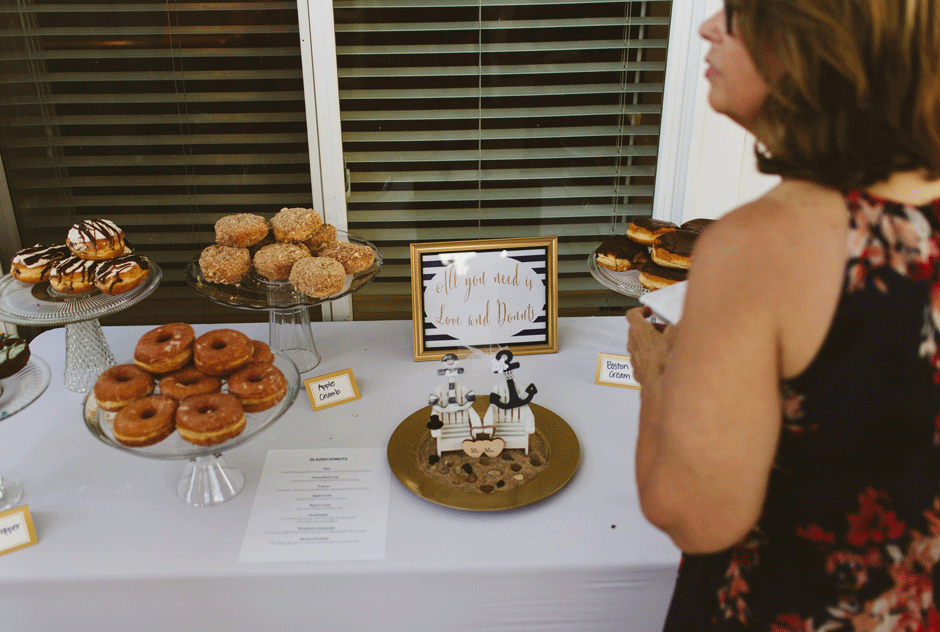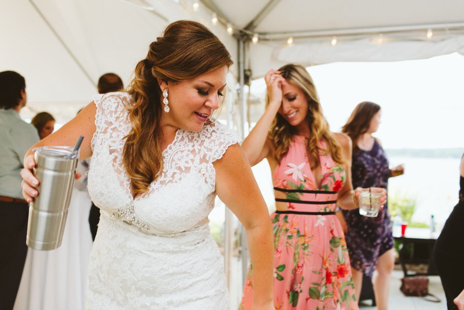 The reception was a blast! I don’t think I left the dance floor all night. So many of our friends and family were dancing and having a fun time. Some guests preferred to enjoy the lakeside breeze or take a boat ride. We just wanted everyone to have fun! We served donuts in place of cake and I heard that everyone loved the donuts. They were from Sweetwater’s Donut Mill in Kalamazoo and they were delicious! One of my favorite moments was the father/daughter dance not only with my dad but when Ryan and our daughter danced together and then welcomed all of the fathers and daughters on the dance floor. I also especially loved when all of our “Roll Tide” family (sorry, Rachel!) joined together for Sweet Home Alabama. So many fun memories!