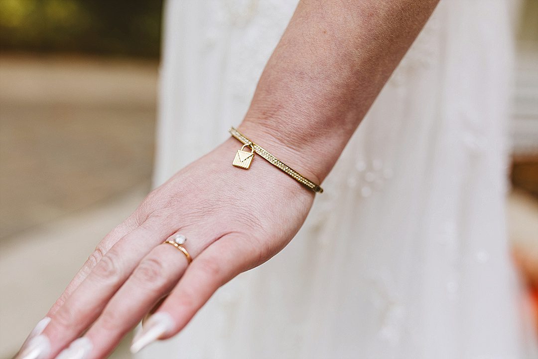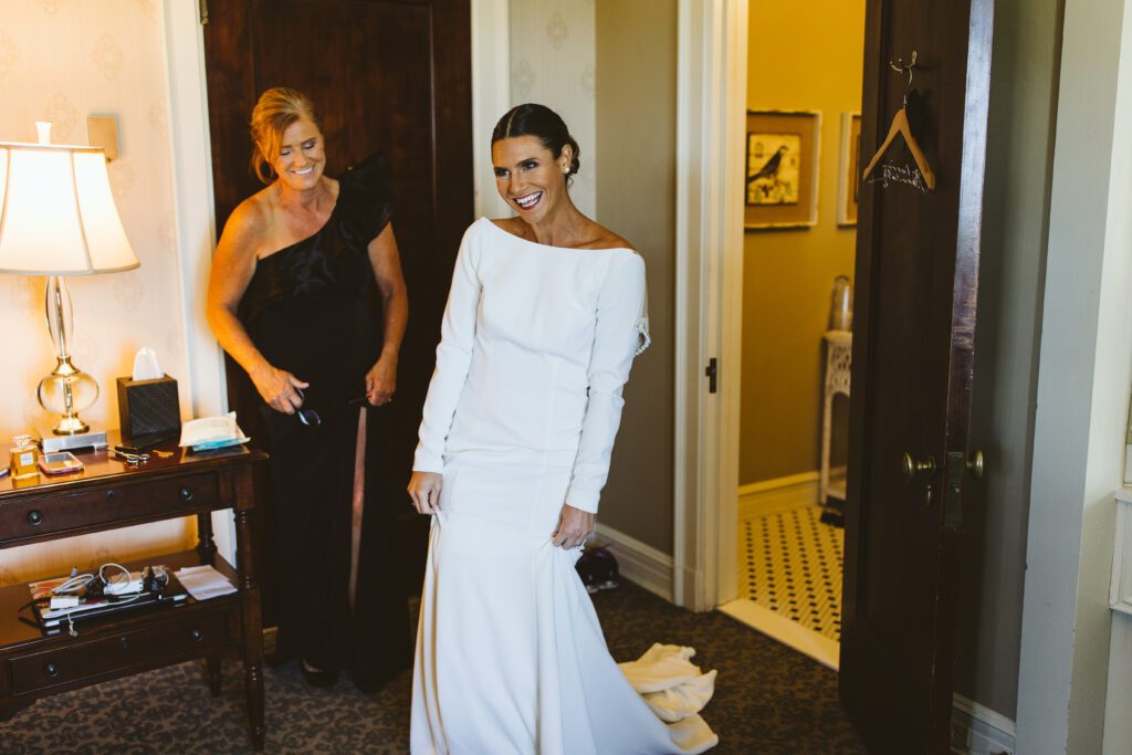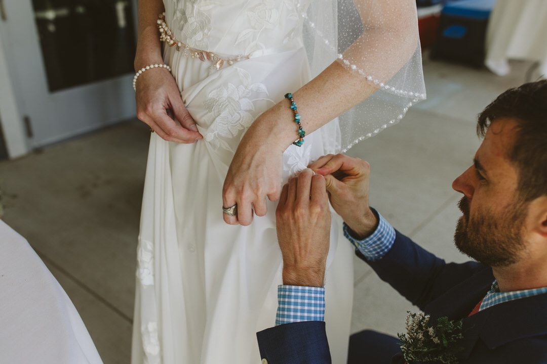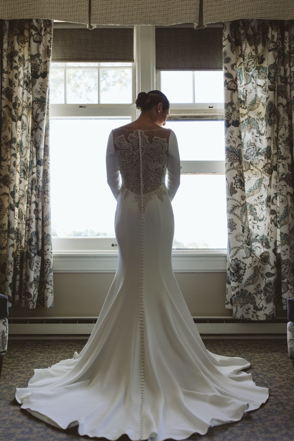 The dress was actually picked out about 30 days before the wedding and the alterations were finished about two weeks before. It was a crazy whirlwind of a mess getting everything secured, but in the end it was absolutely stunning.