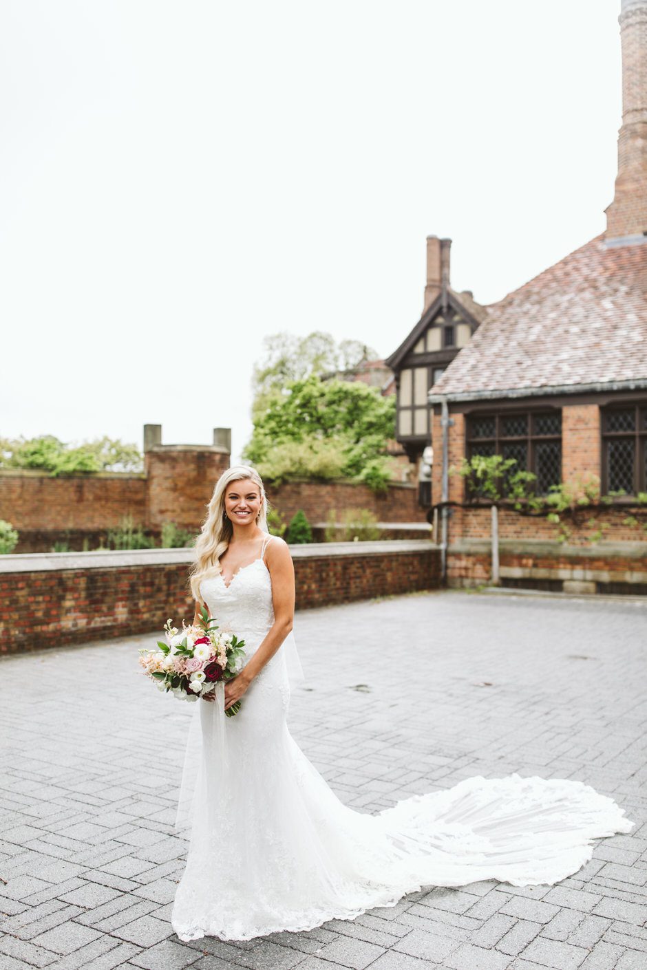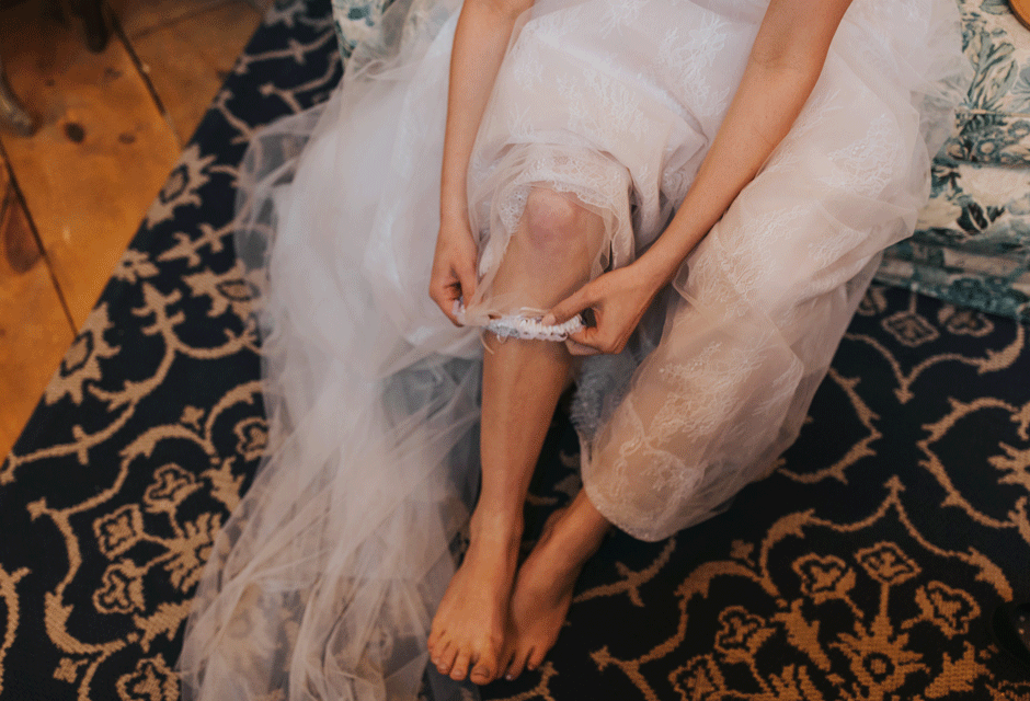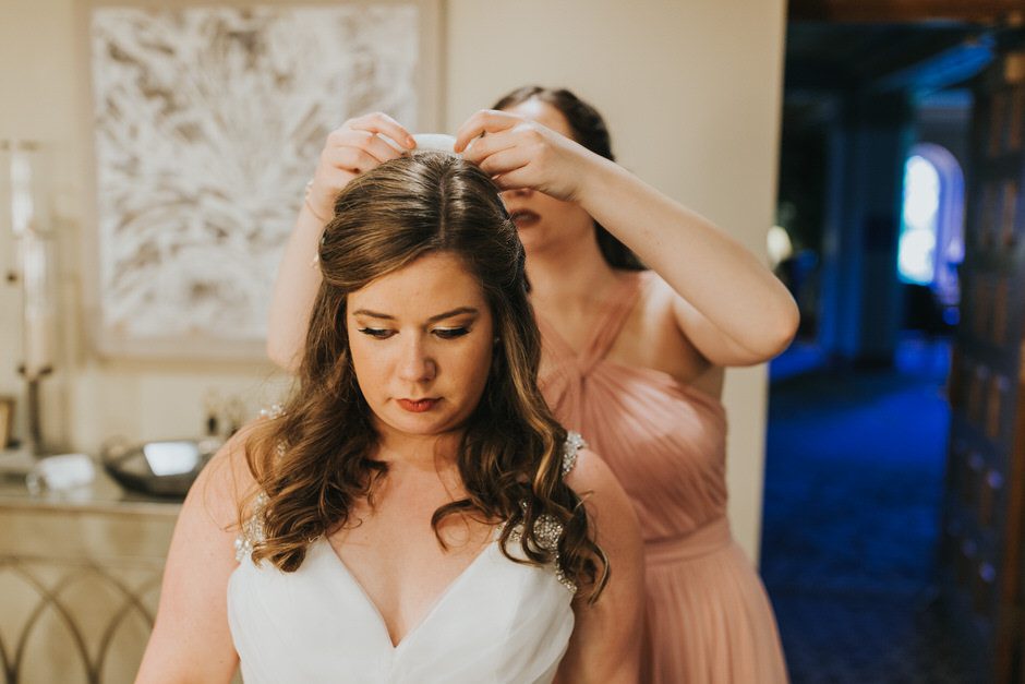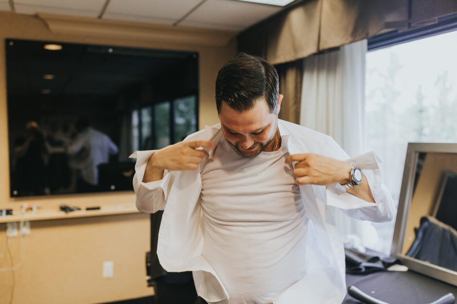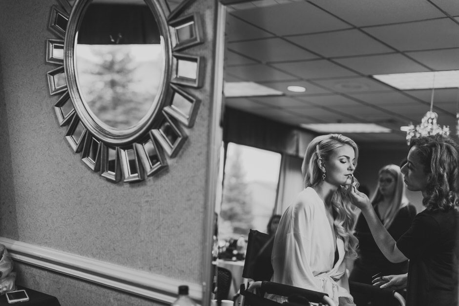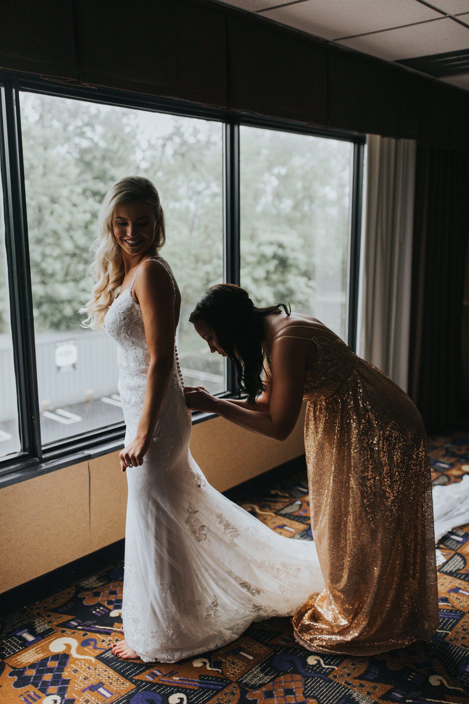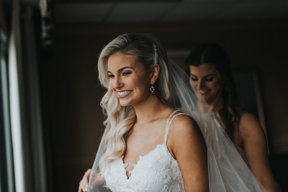 I got my dress at The Wedding Shoppe in Berkley, Michigan. It was just my mom and I that day, which was nice, because I knew she would give me her honest opinion and I wouldn’t have a crowd of people swaying my decision. It was my first time trying on wedding dresses and I knew I wanted to find something I was comfortable in so that I could dance and have fun on my wedding night. I tried on several dresses, but something about this dress made me feel so amazing. I loved that it was traditional in that it was ivory lace with a long train. But also loved how the off the shoulder style and low back made it a little edgy. I also couldn’t help but think of Brad’s face the first time he’d see me in the dress.