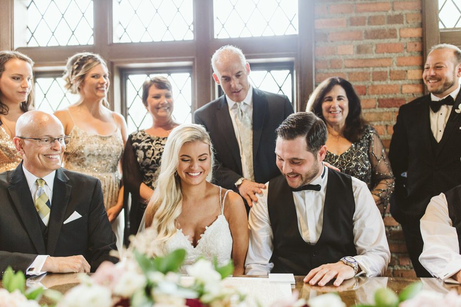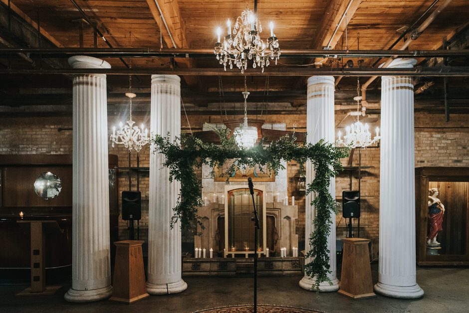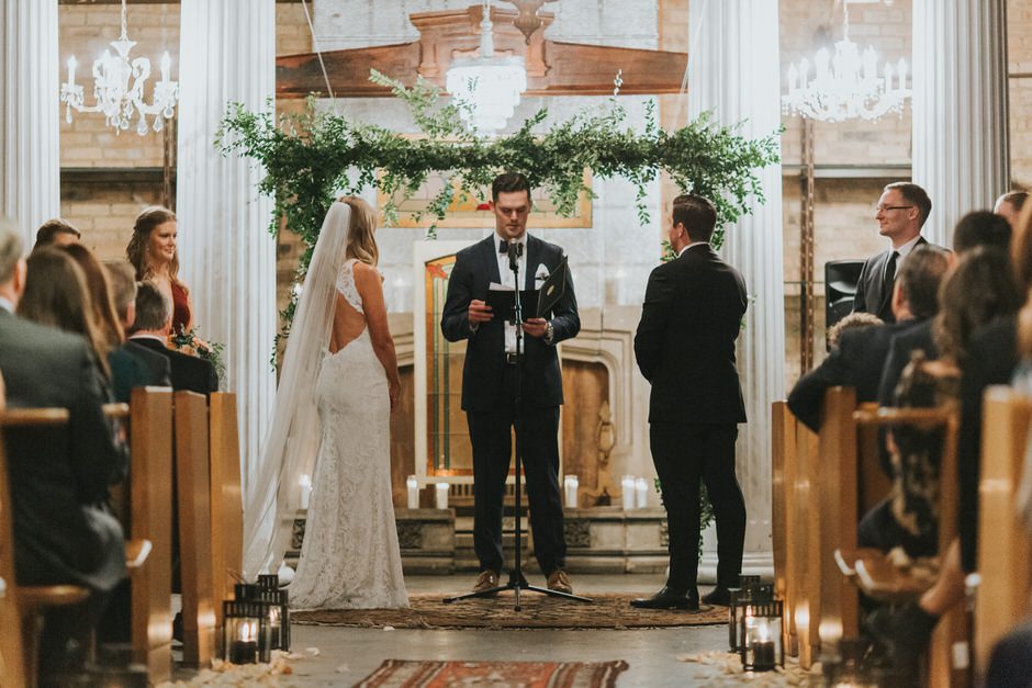 Our floral and décor was done by Emerald City Designs. The venue honestly speaks for itself so we knew we wanted to keep the décor simple, modern, and elegant. We stuck with mostly greenery with touches of blush and white floral for our centerpieces. We kept the color palette natural and added lots of candles to set the mood. The ceremony space is bright and airy with views of the river. We accented our aisle with floral arrangements at the beginning and a greenery arch at the end. After one meeting with Emerald City Designs they were able to bring our vision to life on our wedding day and it couldn’t have been more perfect!