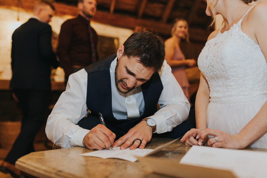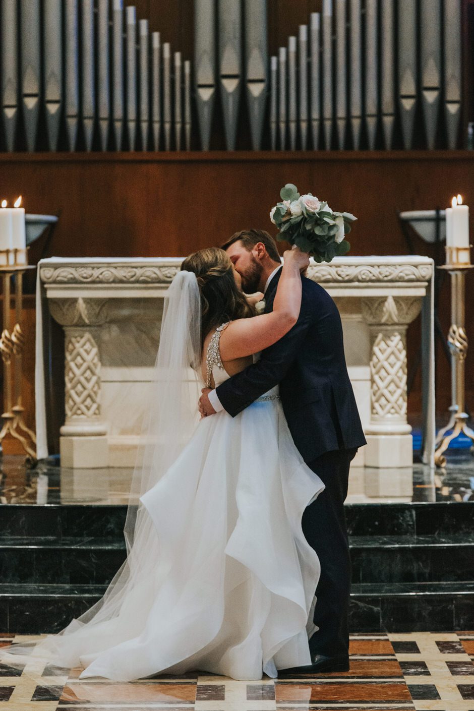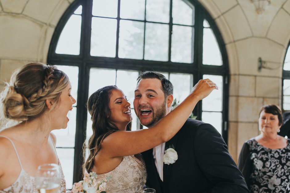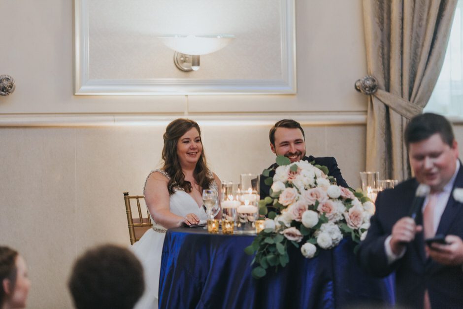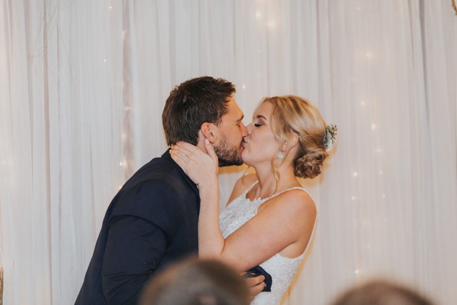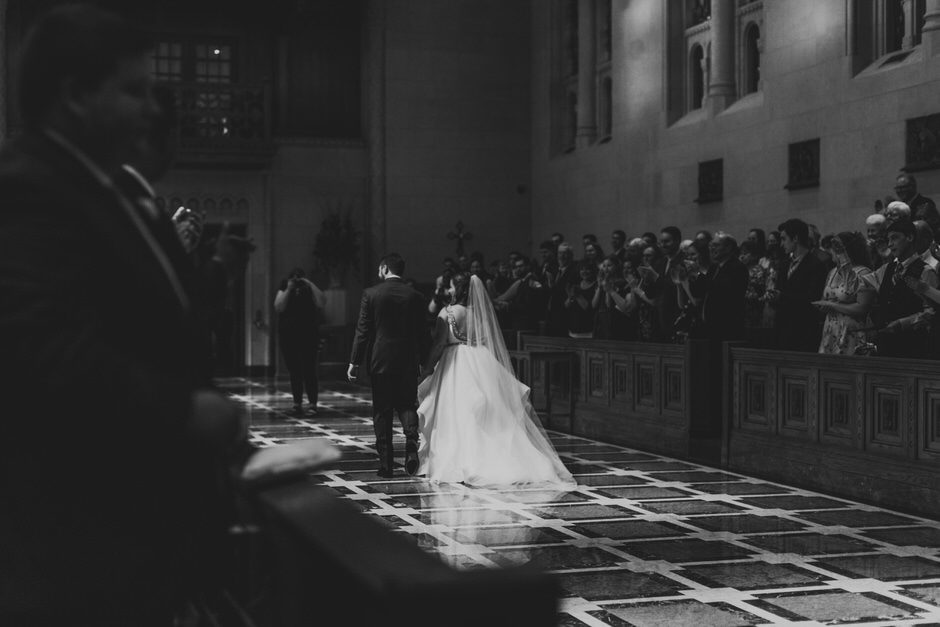 Hockey has always been a big part of Brad’s life and it’s really what brought the two of us together. We were so grateful to have Pastor Andy officiate our wedding. He not only is a Pastor at Brad’s church, but also is a fellow hockey lover and the Chaplin for a local hockey association. He made our ceremony short, sweet, and personal. The night of our rehearsal our wedding coordinator recommend we take a moment to really stop and take it all in after we were pronounced husband and wife. If we could go back to any moment that day it would be this one!