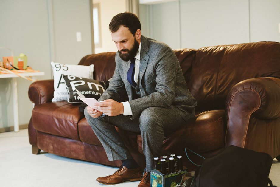 Brad knew he wanted to wear a heavier tweed or wool suit for our wedding, but it was difficult to find in the warmer climate of Nashville! We finally found the perfect suit at Brook’s Brothers. He couldn’t have looked more handsome!