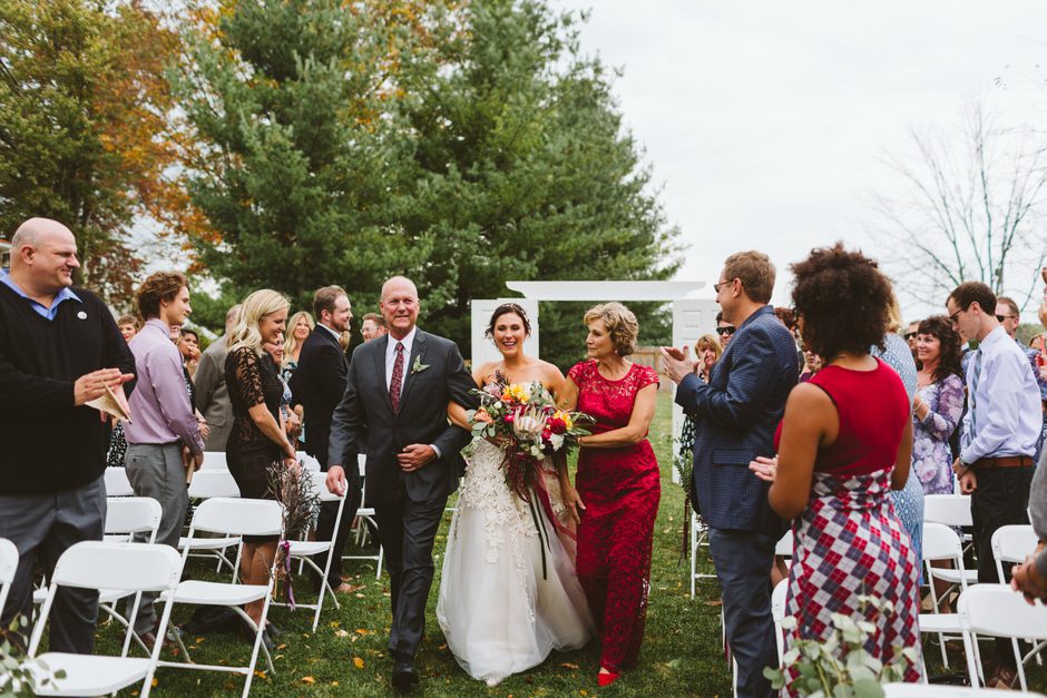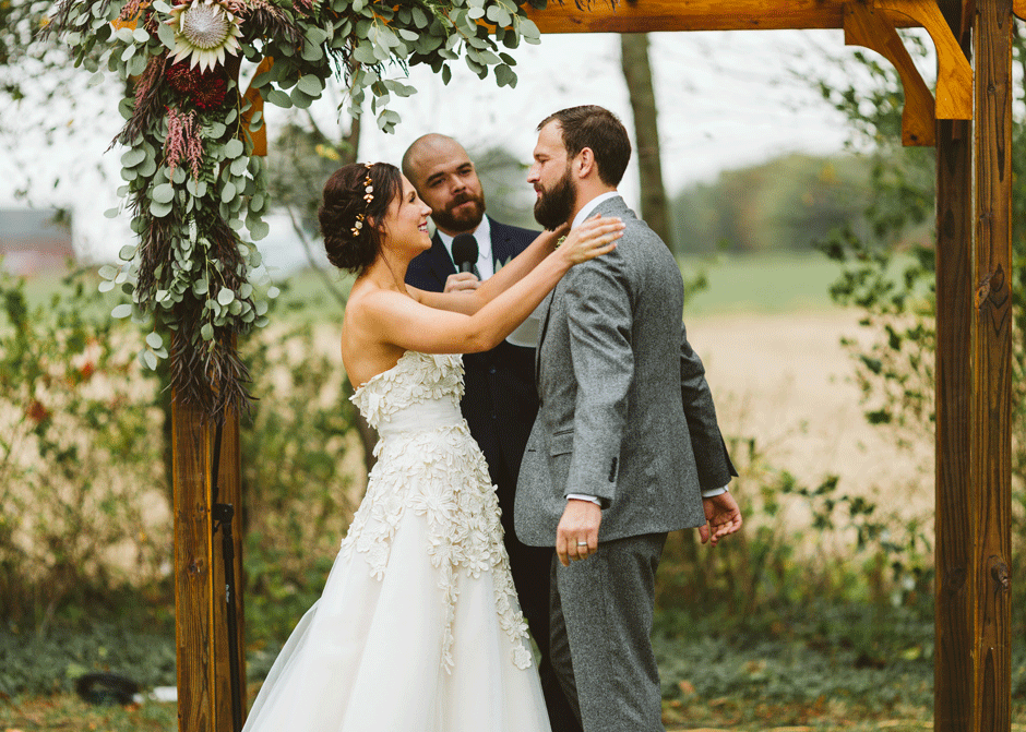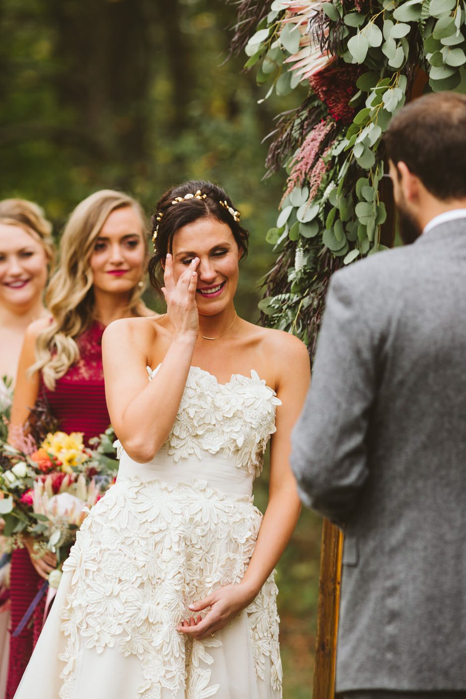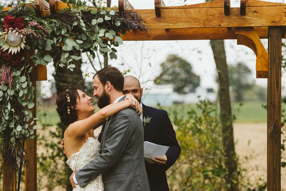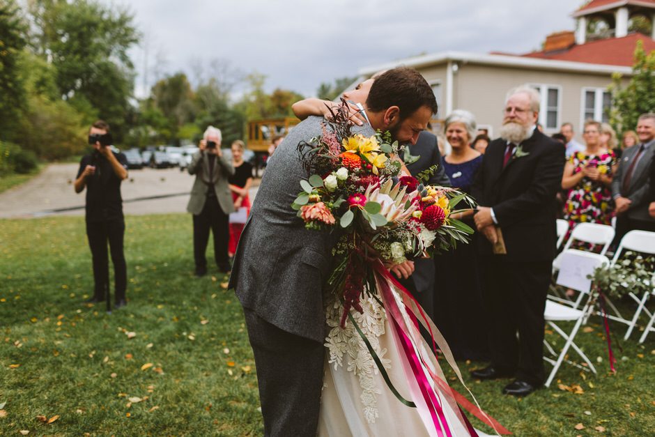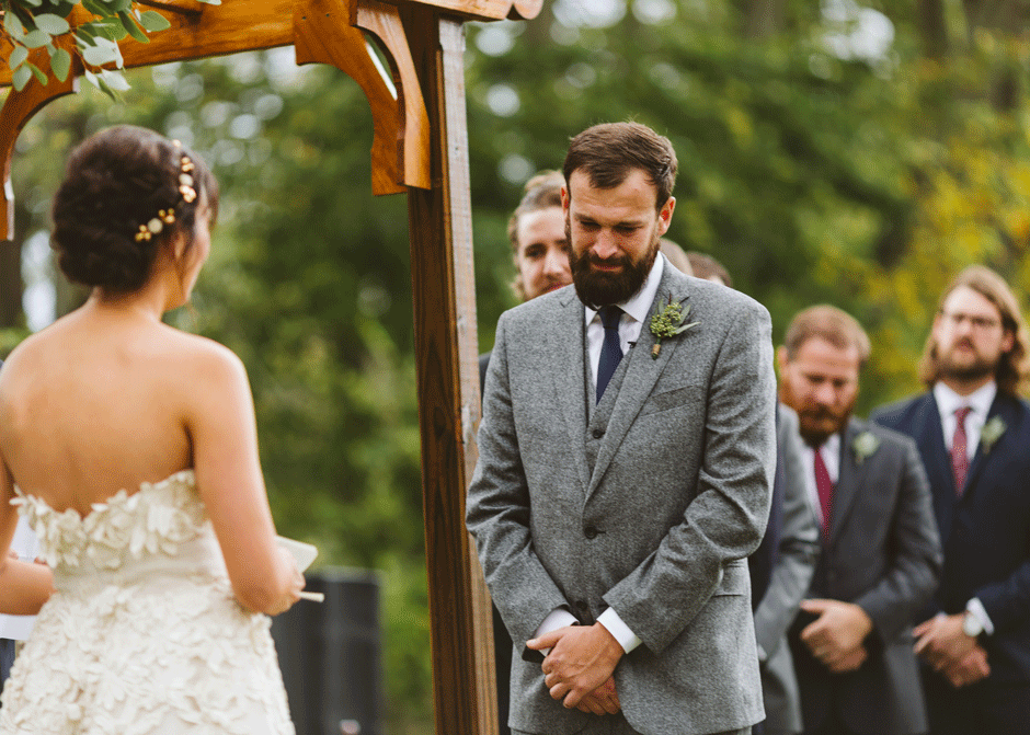 The ceremony was amazing. We didn’t follow many traditions, only ones that felt important and meaningful to us. We wrote the ceremony together, along with our own vows. We both had both of our parents walk us down the aisle. Our friend Ted was our officiant, and we had two close friends read passages from literature that were meaningful to us. Kendra is very proud that she made Brad cry!
