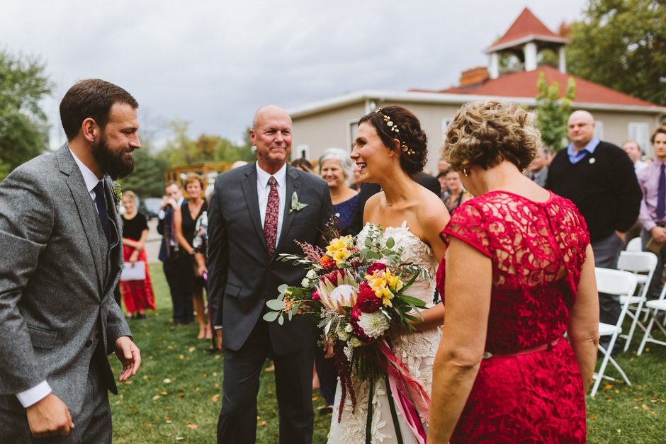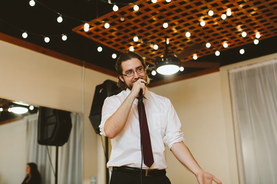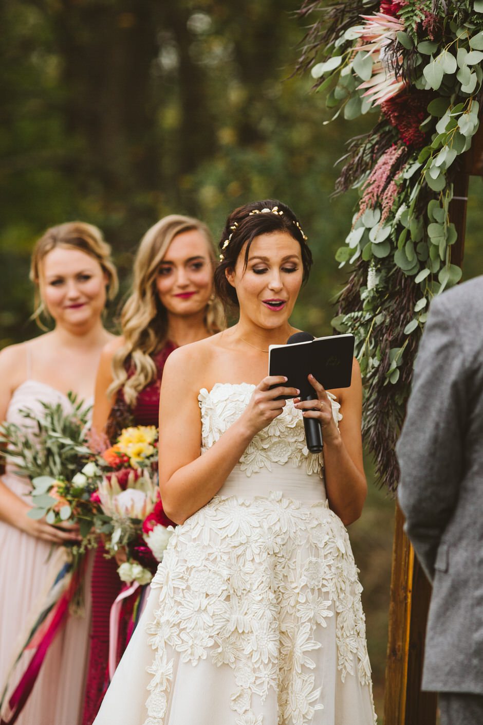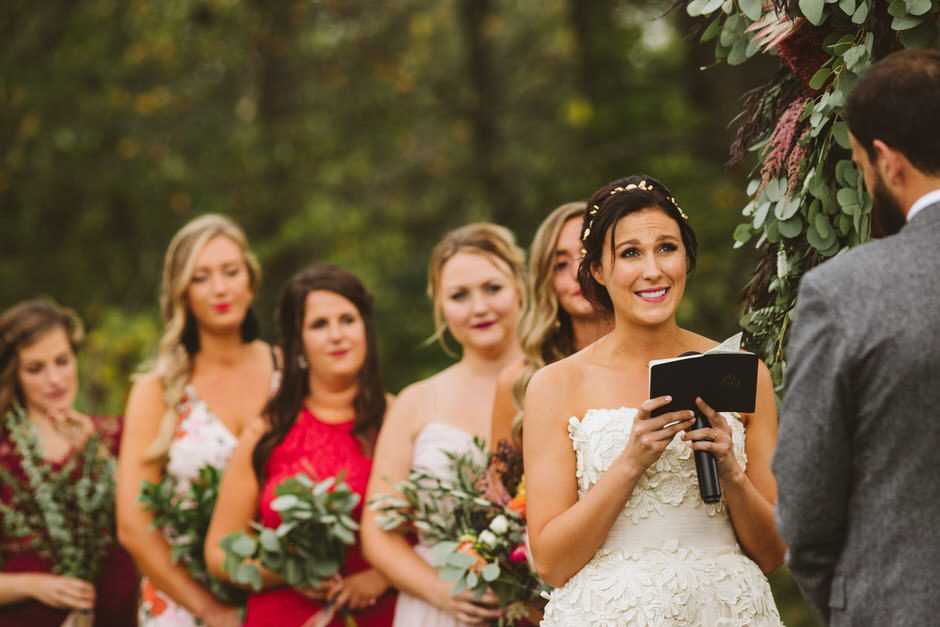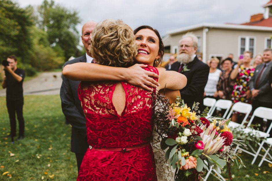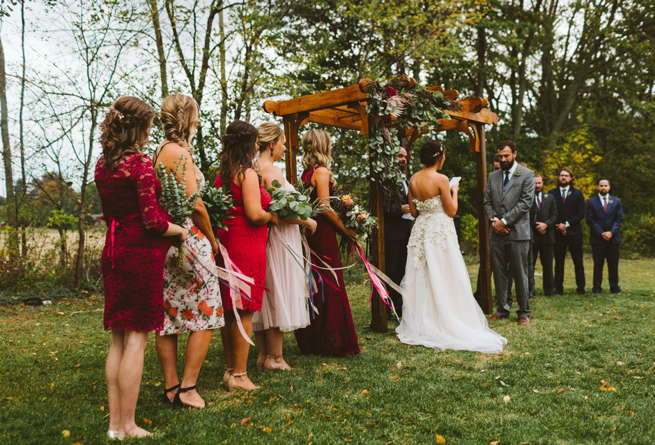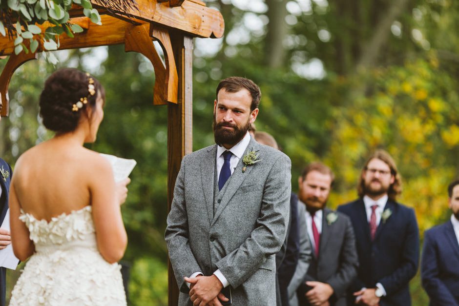 The ceremony was amazing. We didn’t follow many traditions, only ones that felt important and meaningful to us. We wrote the ceremony together, along with our own vows. We both had both of our parents walk us down the aisle. Our friend Ted was our officiant, and we had two close friends read passages from literature that were meaningful to us. Kendra is very proud that she made Brad cry!