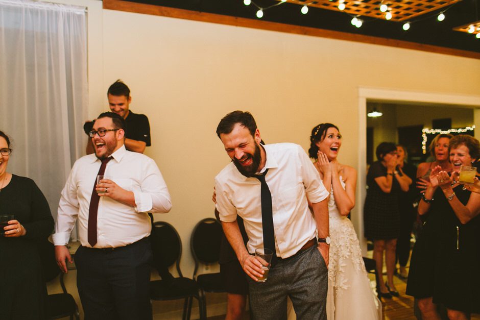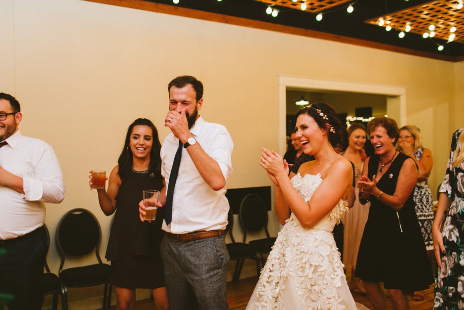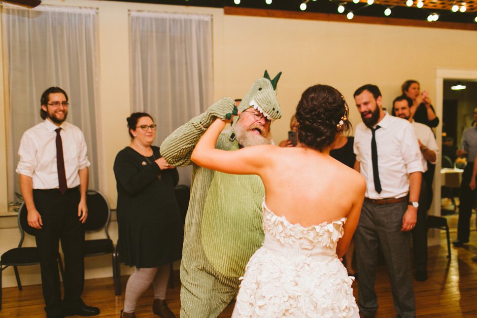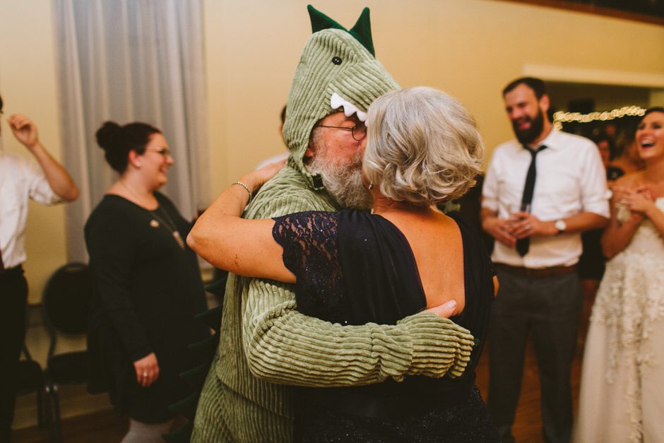 Our reception was pure magic! The speeches, the food, the impromptu pom-pom wars that broke out between tables – so much fun! Though we’re pretty sure nothing could ever top Brad’s dad making a surprise appearance in a dinosaur costume on the dance floor. We closed out the night on a USA themed school bus turned party bus, blowing out the speakers and dancing on the seats. Truly the best night of our lives.