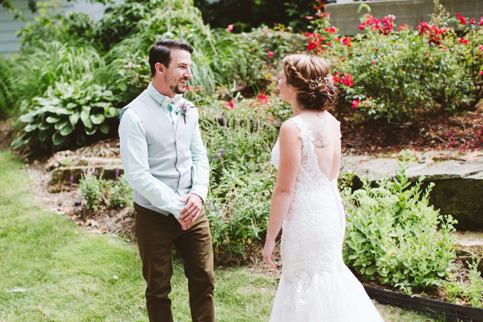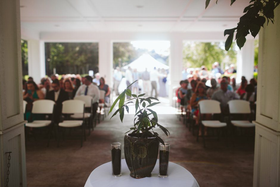 The ceremony was spectacular. It was a relaxed environment outside, the sun was peeking through the clouds, all of our family and friends were there, some seated, some standing, making it seem very casual, just like we had wanted.