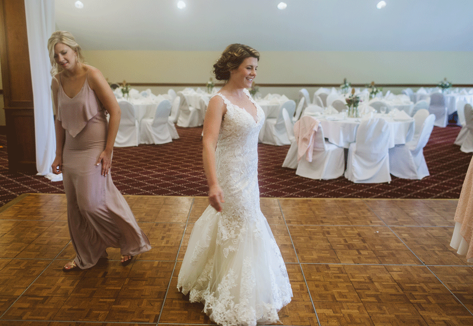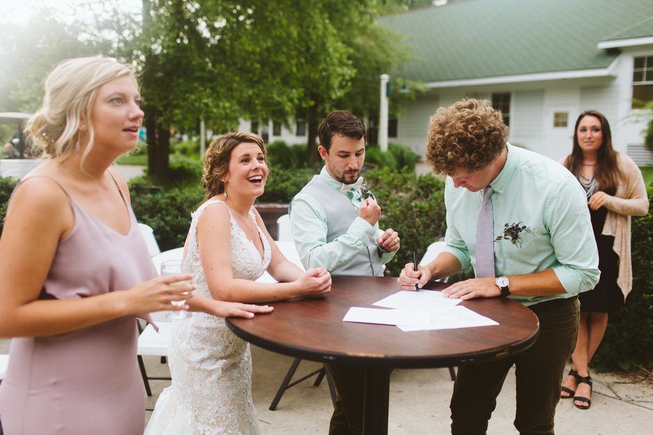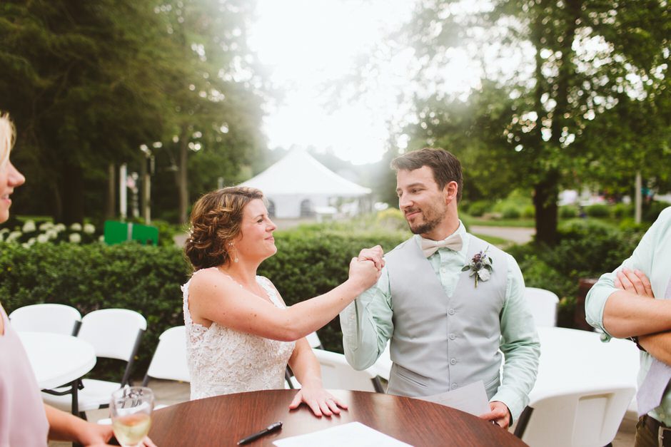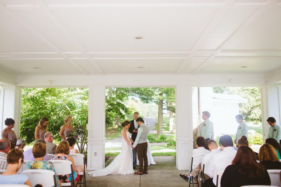 The Grand Haven Golf Club, amazing event coordinator Laura, such a wonderful and beautiful atmosphere. Where we got married was under the pavilion by the putting green, and the reception was in the vintage room, which was just that, very vintage looking thanks to the bright red carpet. Big beautiful windows and door that face the golf course, this location was exactly what we wanted, a place that was woodsy enough for our taste but simple and convenient for our guests. IÂ guess you could say that was what we wanted out of our entire wedding was a simple day that was focused on having fun and not too many other distractions.
