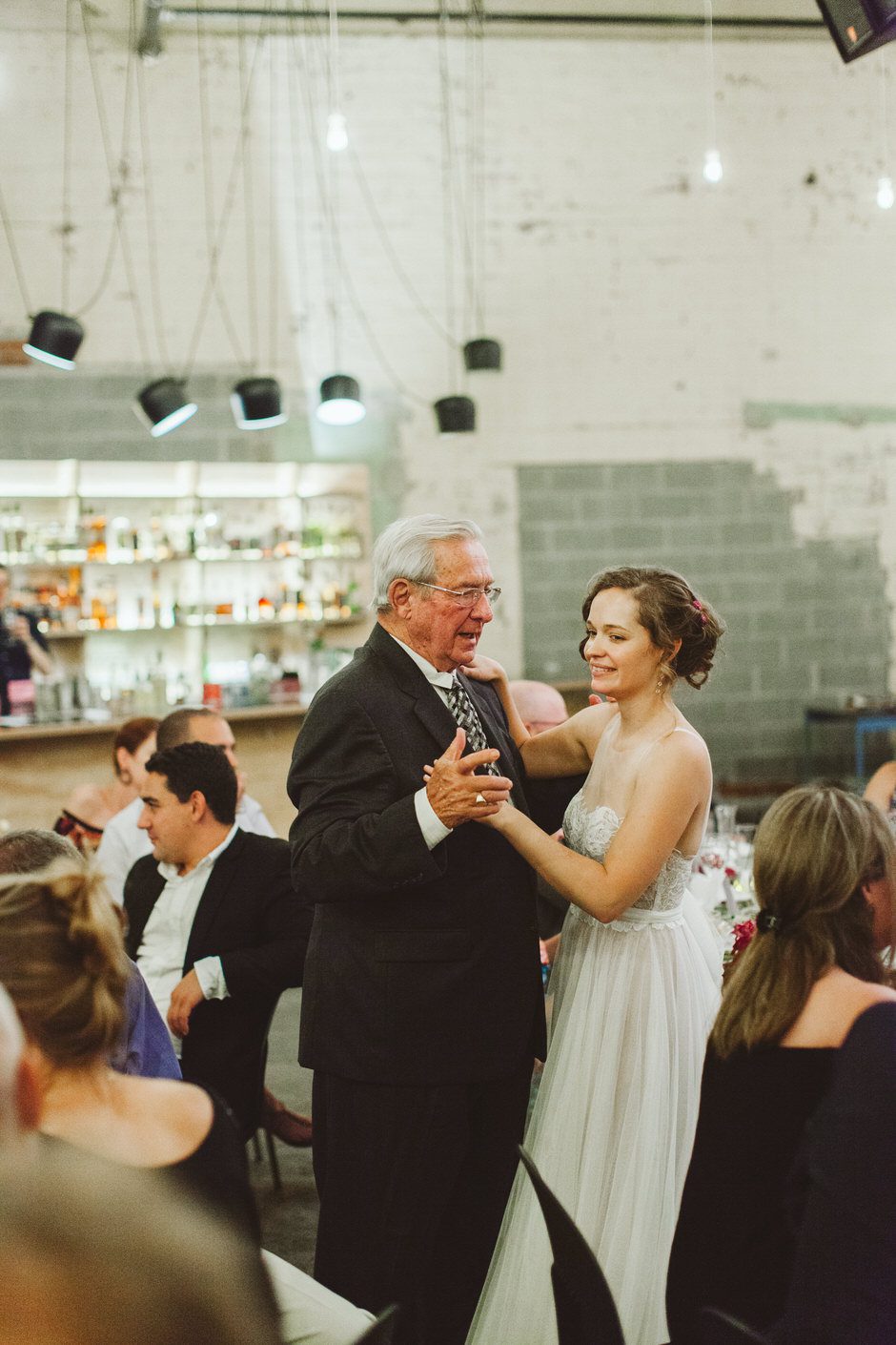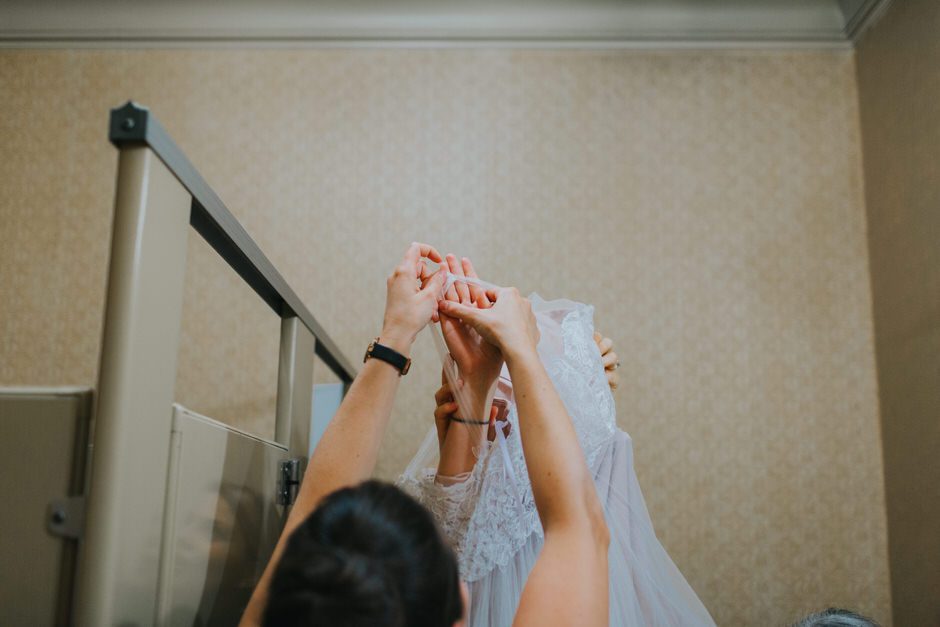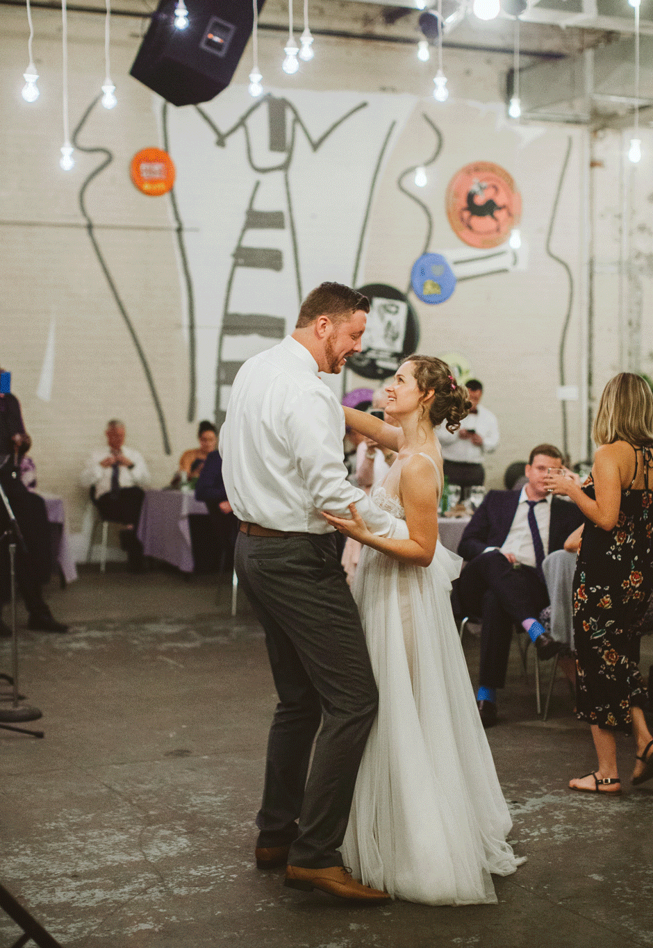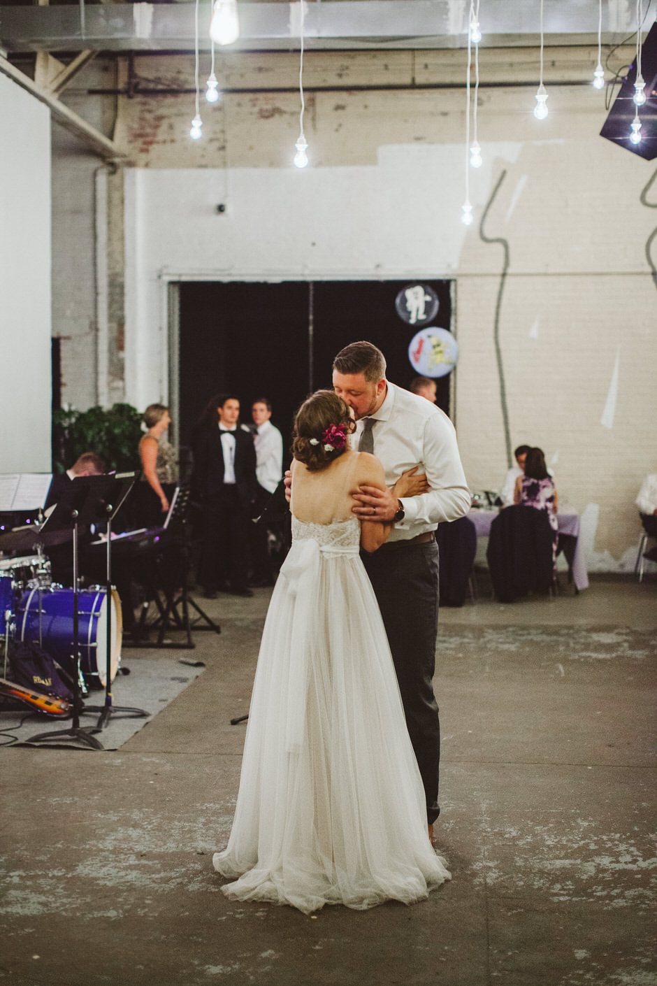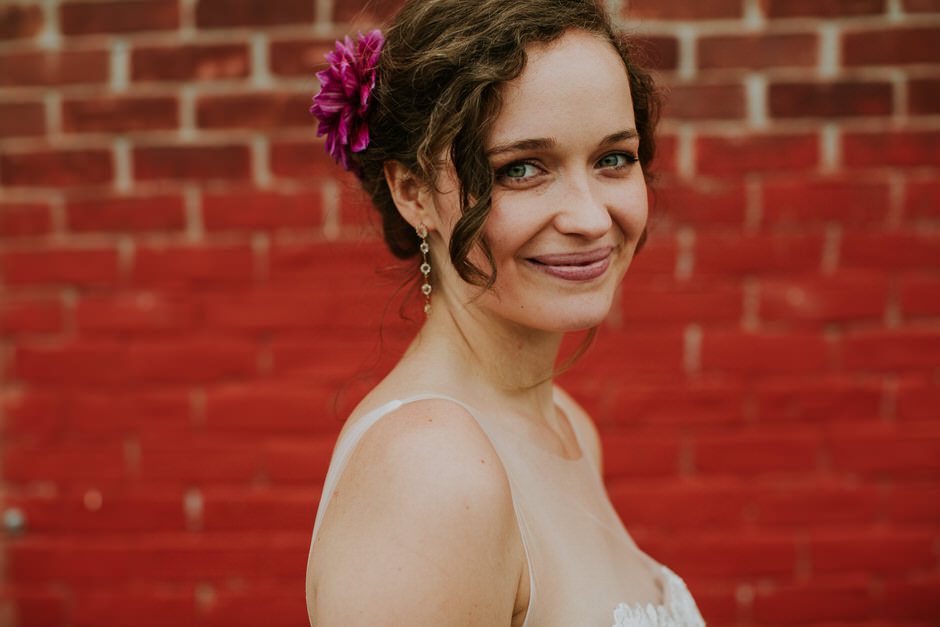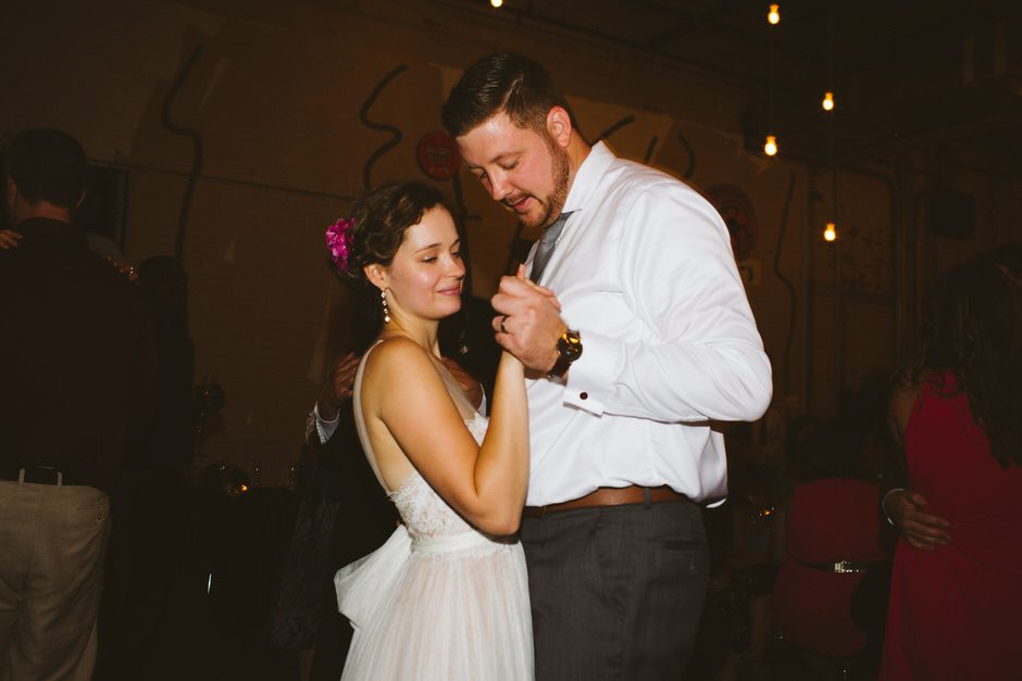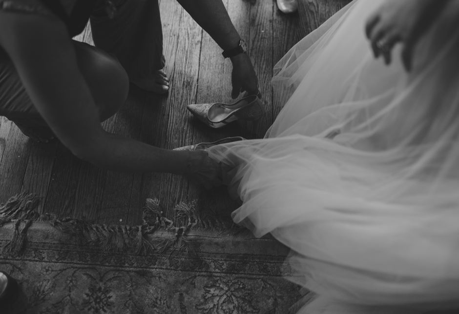 I knew I wanted minimal jewelry because the top of the dress was so delicate and beautiful, so I only wore earrings (also from BHLDN). They turned out to be way too long (they kept getting stuck in my hair and on the dress when I tried them on) so my mom broke a few pieces off right before the ceremony. My shoes were Jessica Simpson and were absolutely beautiful, but also horribly, horribly uncomfortable. Walking around to take pictures after the ceremony was a trial, but thankfully I had Calder to make me laugh and Rachel managed to not capture any of the moments where I was grimacing in pain. Of course, they came off fairly quickly at the reception, and my feet were a very dirty black from the concrete floor at the end of the night. I tend to go barefoot as much as possible anyway, so this felt pretty natural.