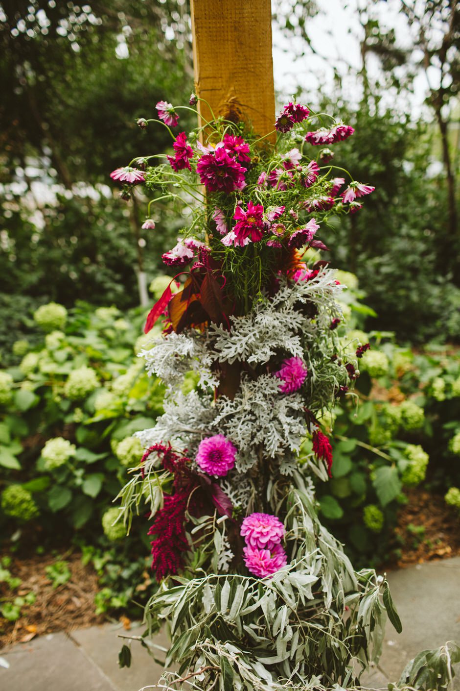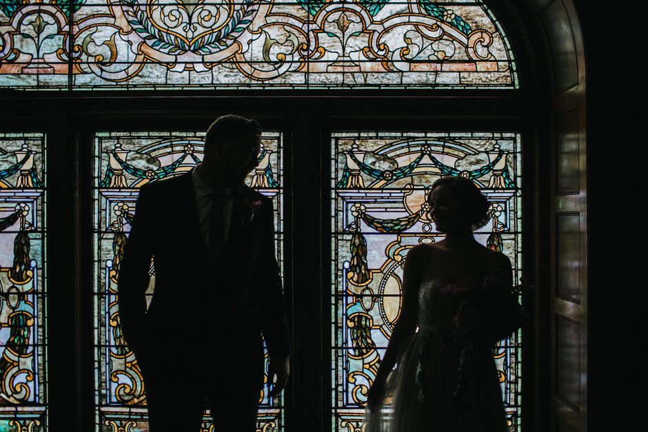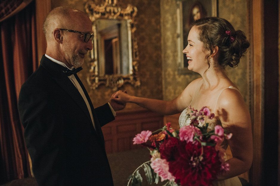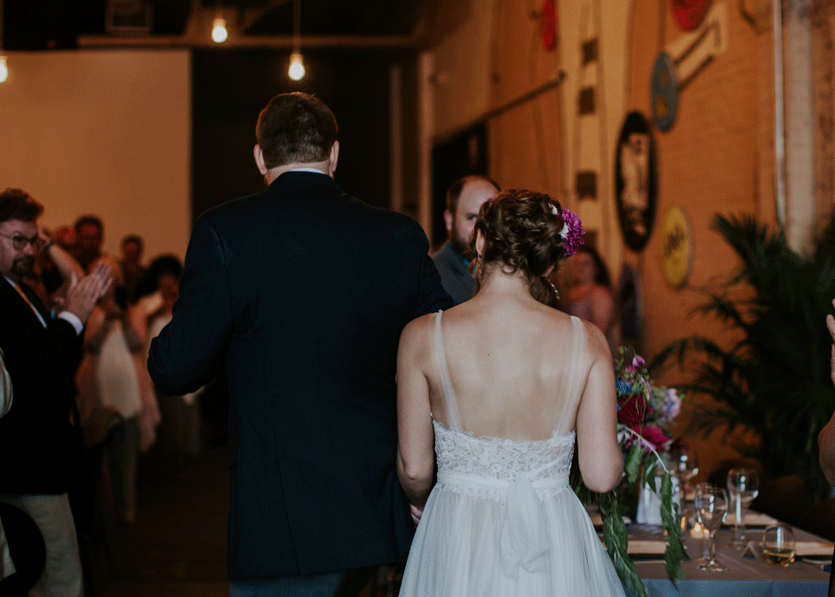 My dad built the incredible arch for our ceremony and covered it in flowers with direction from my bridal party. My favorite pieces from the reception were the magical glass terrarium globes, which my mother and sisters put together using flowers and moss my mom brought all the way from Seattle (in her suitcase! On a plane!). My aunts and bridal party did the work decorating the museum for the reception, and it couldn’t have turned out more perfect if it had jumped directly out of my head and into the space.