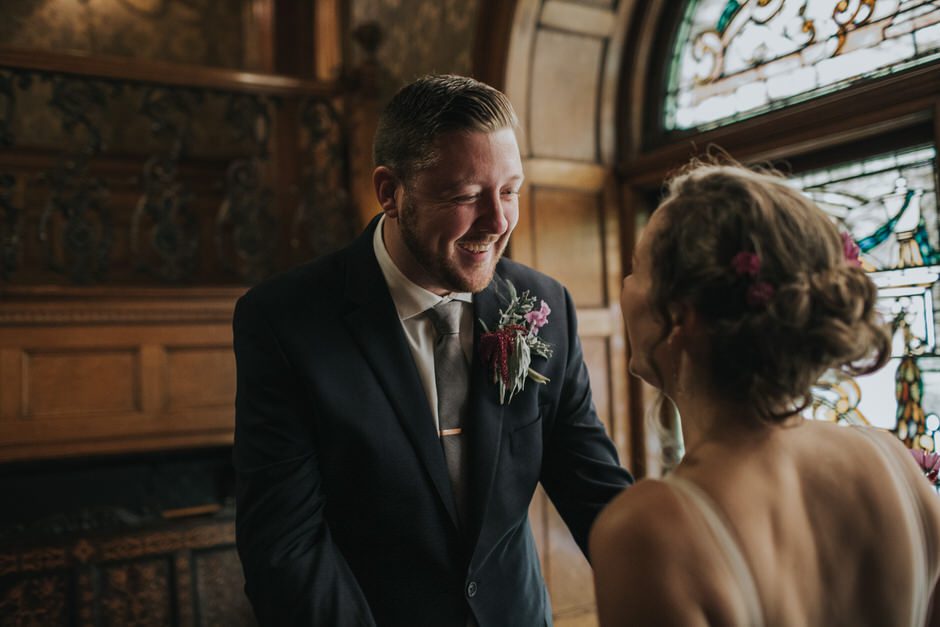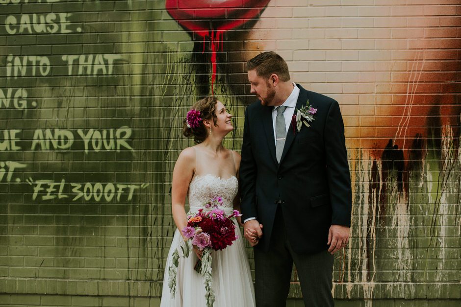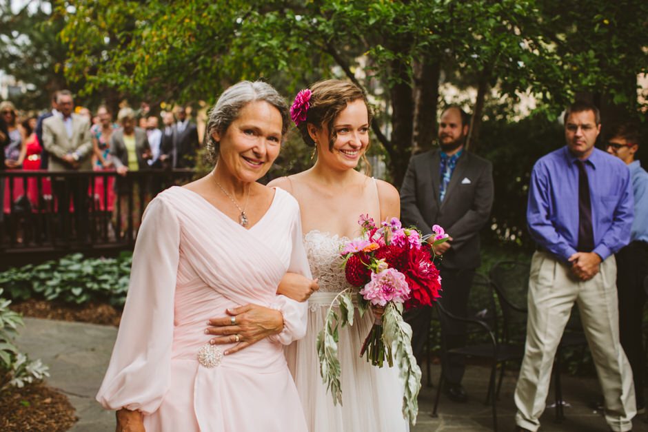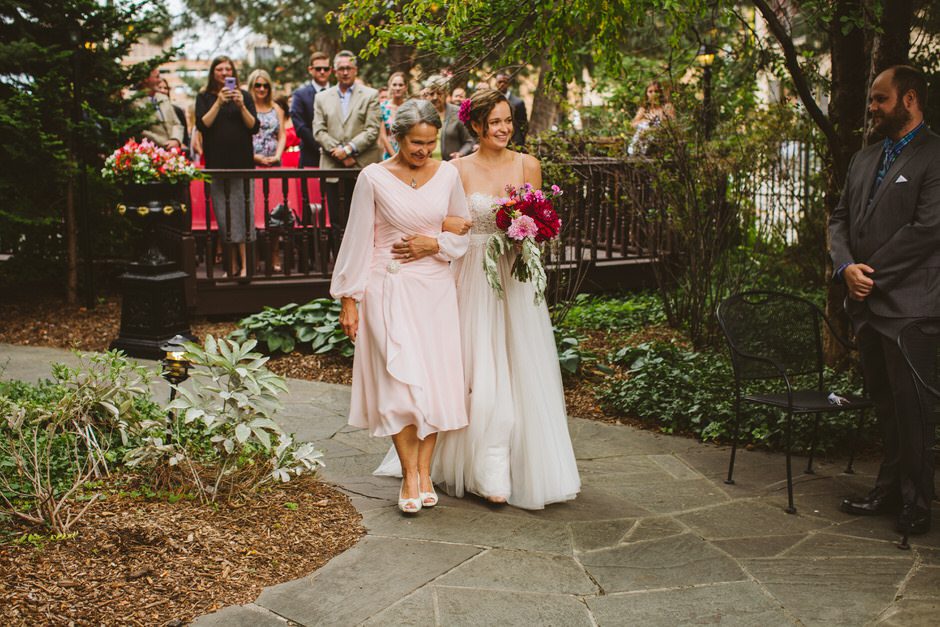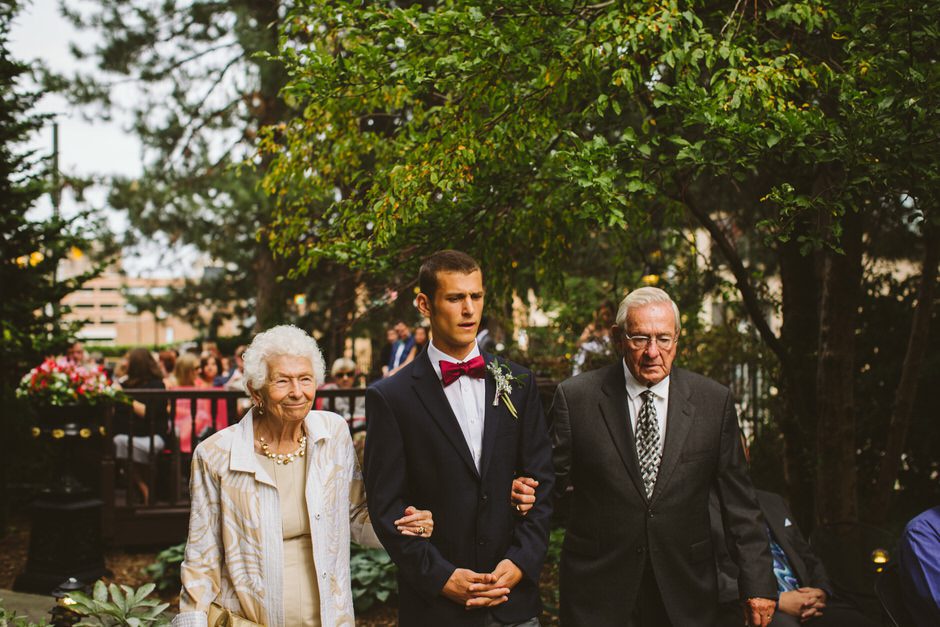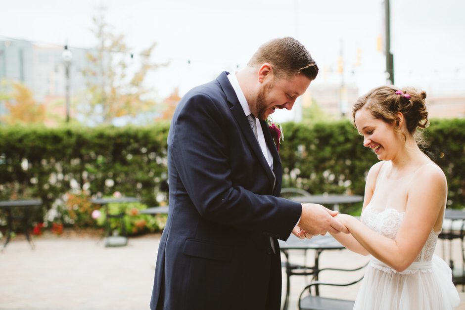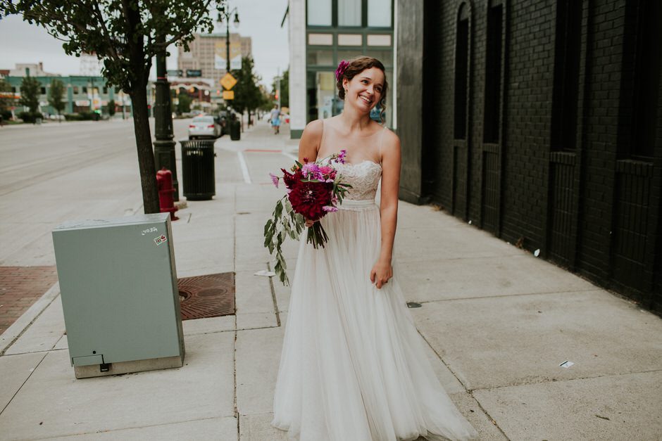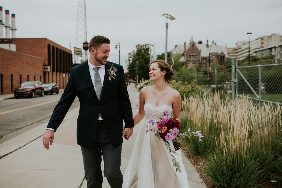Our ceremony was outside in the garden of the Whitney Mansion, and the reception was held at MOCAD (Museum of Contemporary Art Detroit). We debated briefly between getting married in Detroit or up north in the Traverse City area, however it was never much of a contest. Detroit has been incredibly important to us as the city where we have our first home together, and a place we love and believe in fiercely. It was important to us to share the city with our family and friends (those who didn’t live here already), and make it a part of our wedding. While we both enjoy time up north and Traverse City is Calder’s hometown, Detroit is something we uniquely share together.