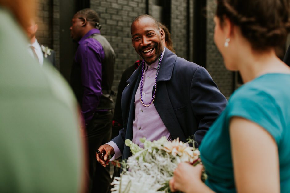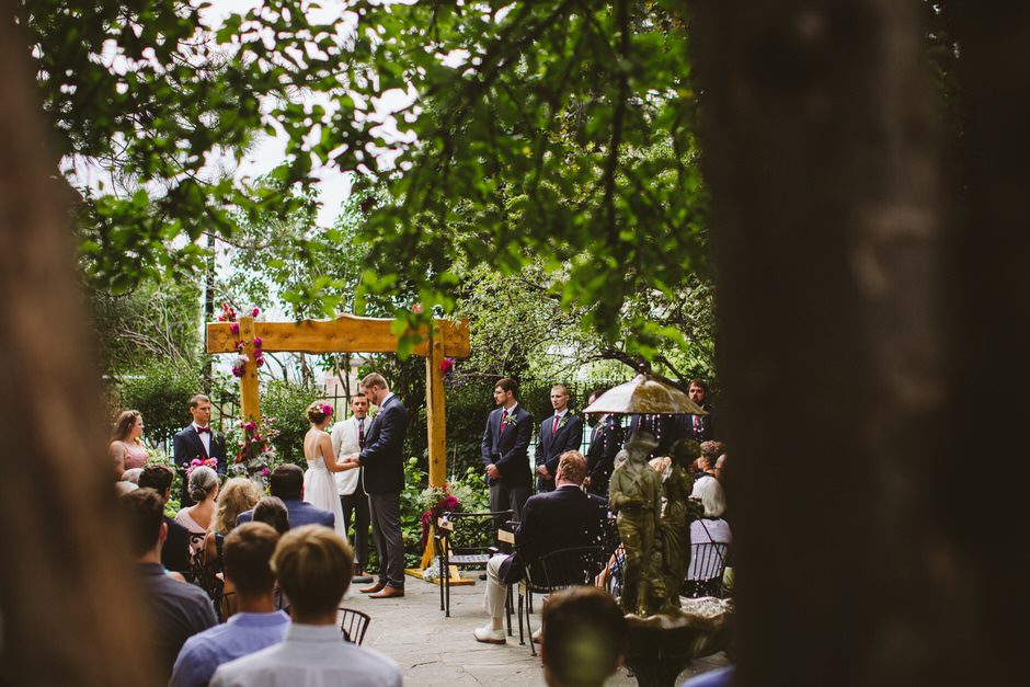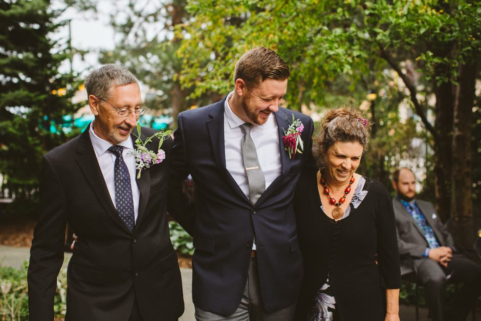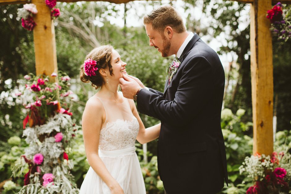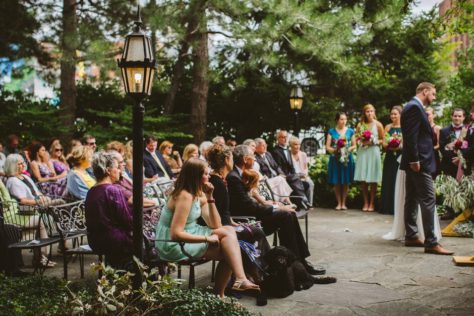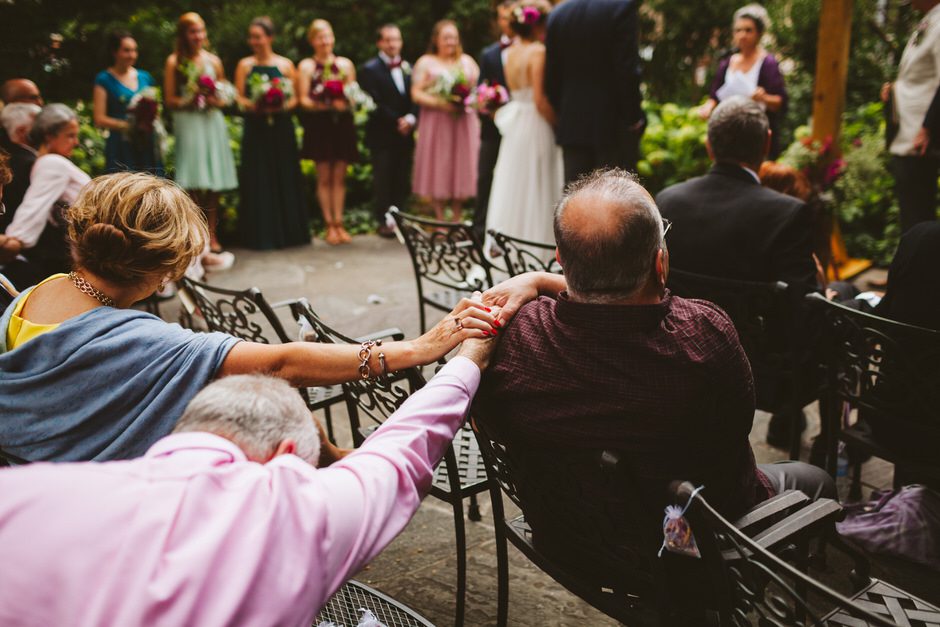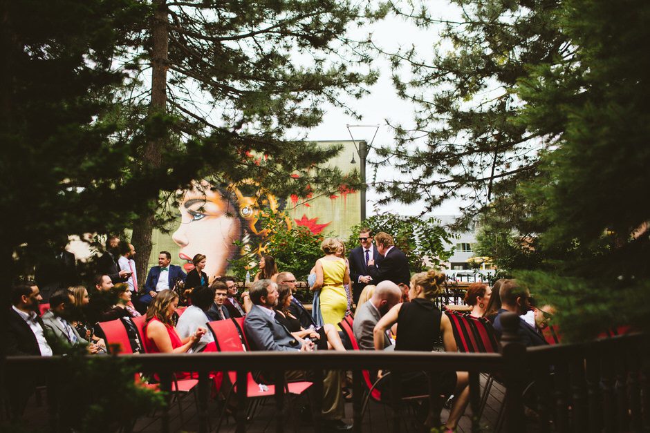 We spent a lot of time thinking about how we wanted our ceremony to be. Neither of us is religious, and we both tend to balk at tradition. We ended up settling on the idea of having our nearest and dearest fulfill the role of ‘officiant’ and marry us as a group. We decided that the only reason we were having a wedding, rather than eloping privately, was because we wanted to share this experience with our loved ones and in this spirit, we wanted to make sure to include everyone as much as possible in the ceremony itself. Our dear friend Matt served in the role of Master of Ceremonies and did such a wonderful job providing solemnity, meaning, and humor.