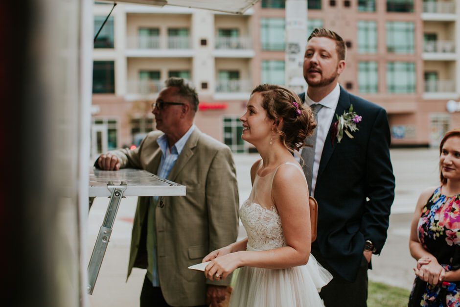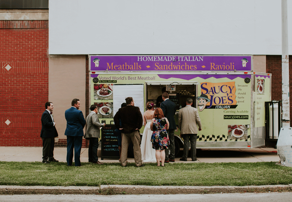 We decided to go with food trucks for dinner, for three reasons: first, catering is expensive (!), second, food trucks are a quintessential Detroit staple, and third, we thought it was fun and unique! Both Saucy Joe’s and Regina’s produced awesome food and we were really happy with this aspect of our reception.