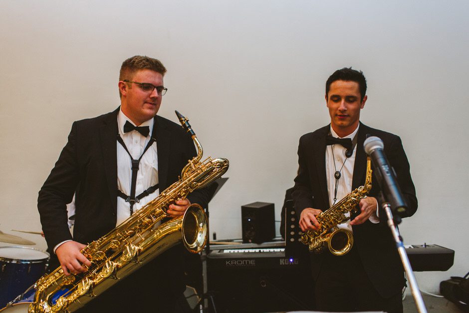 When we first began planning, we came up with a few words that represented the feel we wanted for our wedding. The most important of these were: fun and loving. Our ceremony covered the loving part, and the reception was nothing if not fun. The live music was really the cornerstone that set the mood and injected energy and joie de vivre into the whole evening. Live music was something Calder felt VERY strongly about, while I was less convinced it was necessary. It’s a good thing Calder got his way, because he was completely and totally right about how much of a difference live music would make.