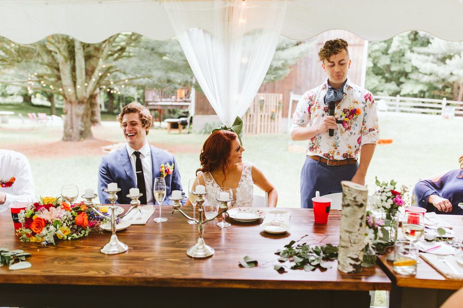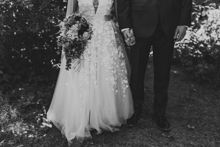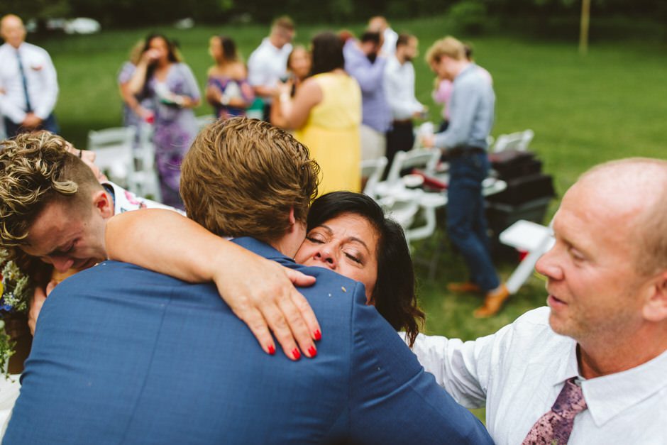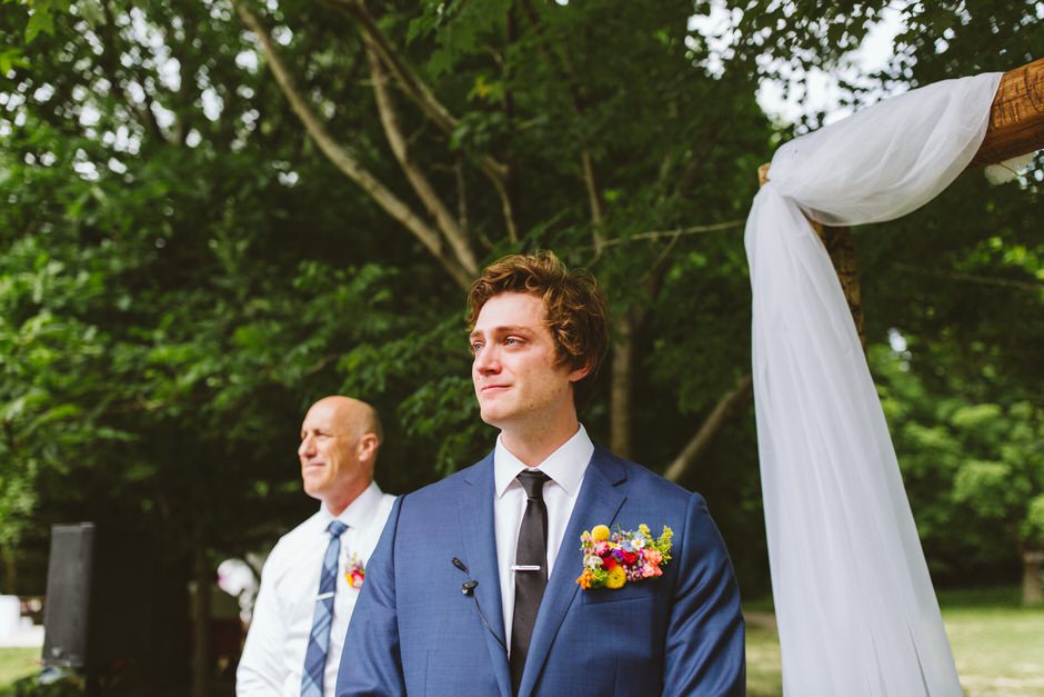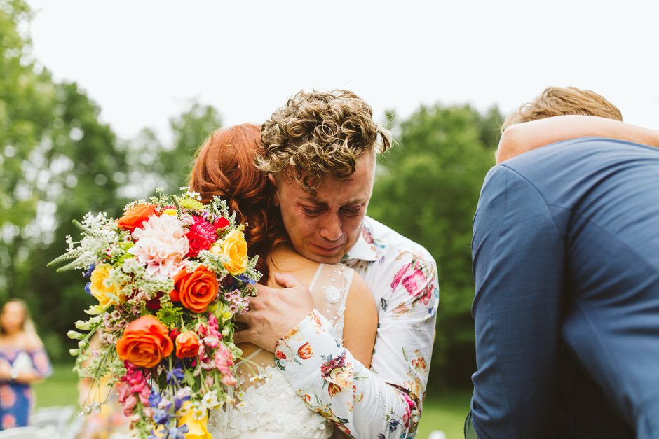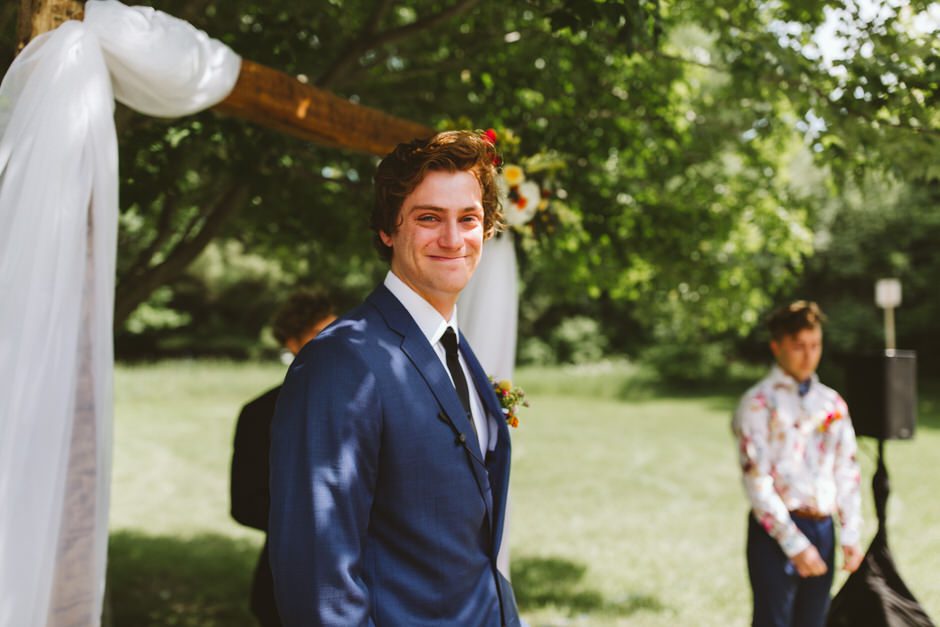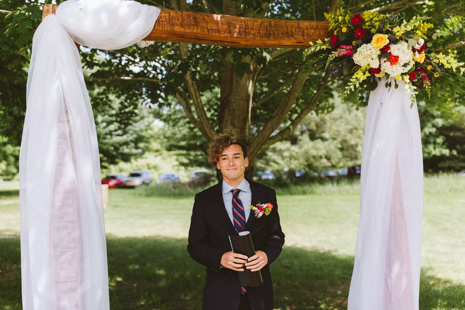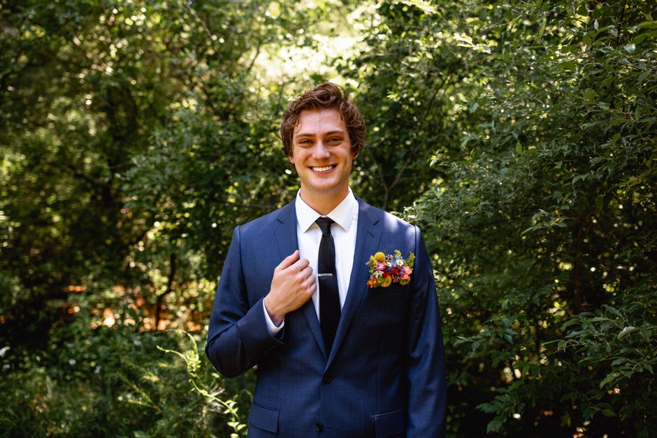 Because it was an outdoor wedding and in the middle of summer, I wasn’t 100% on board with the velvet material his suit was made of. I ended up going with a super comfortable, and breathable suit from J. Crew that I’ll continue to wear for special occasions in the future. All things considered, my wildflower corsage pocket square was probably my favorite part of the outfit. All Occasions in Ludington, MI, did an awesome job putting it together!