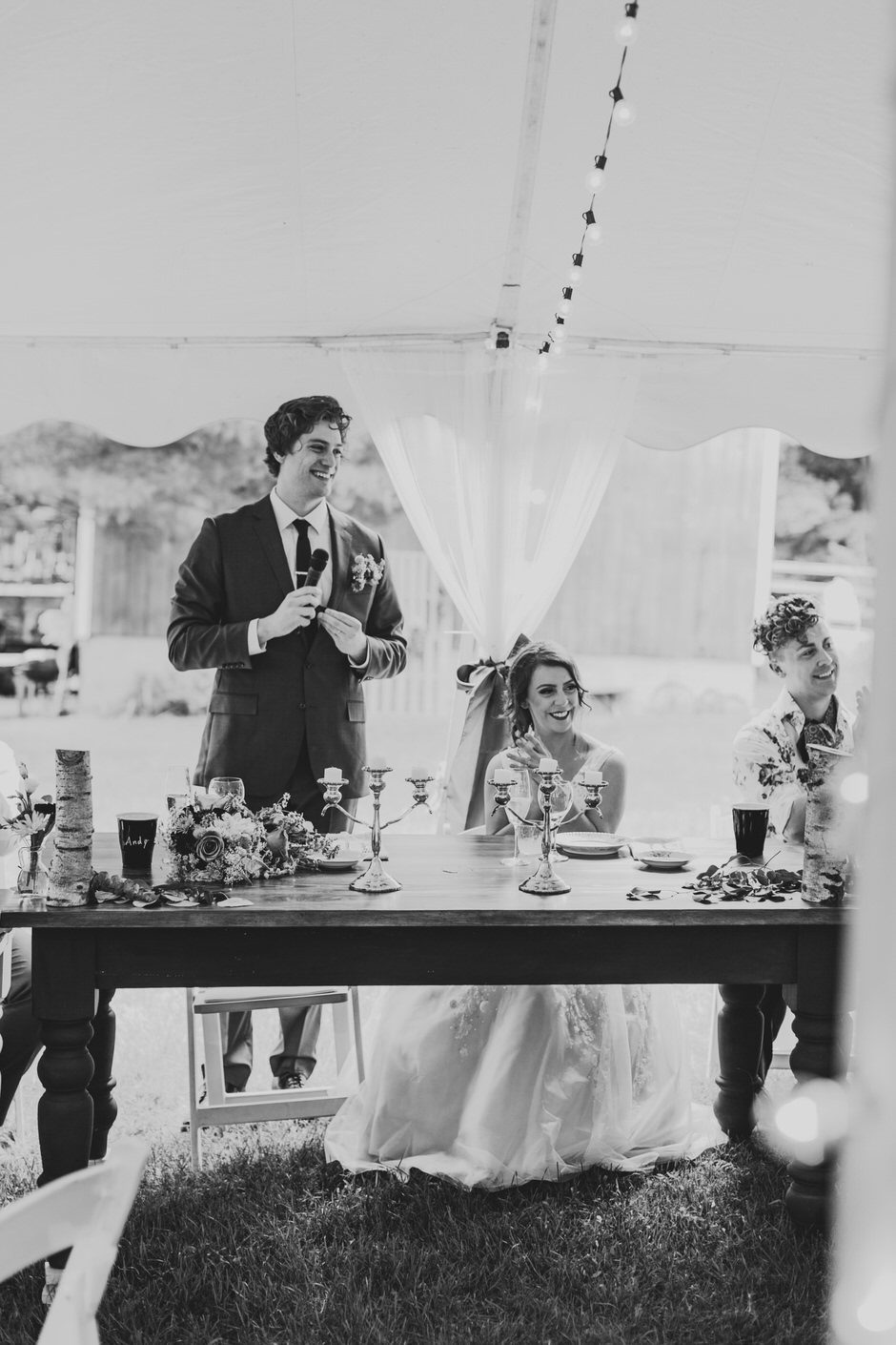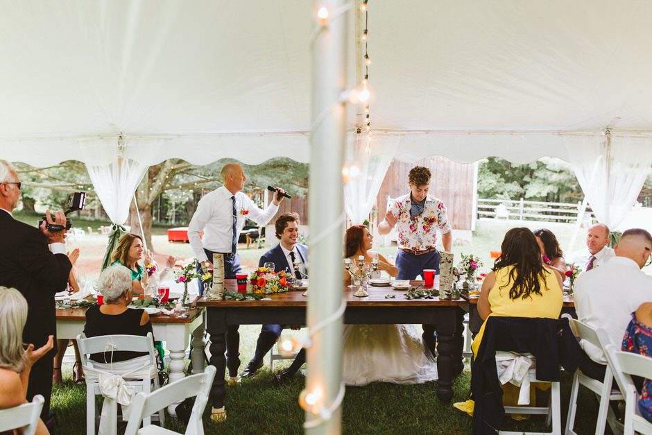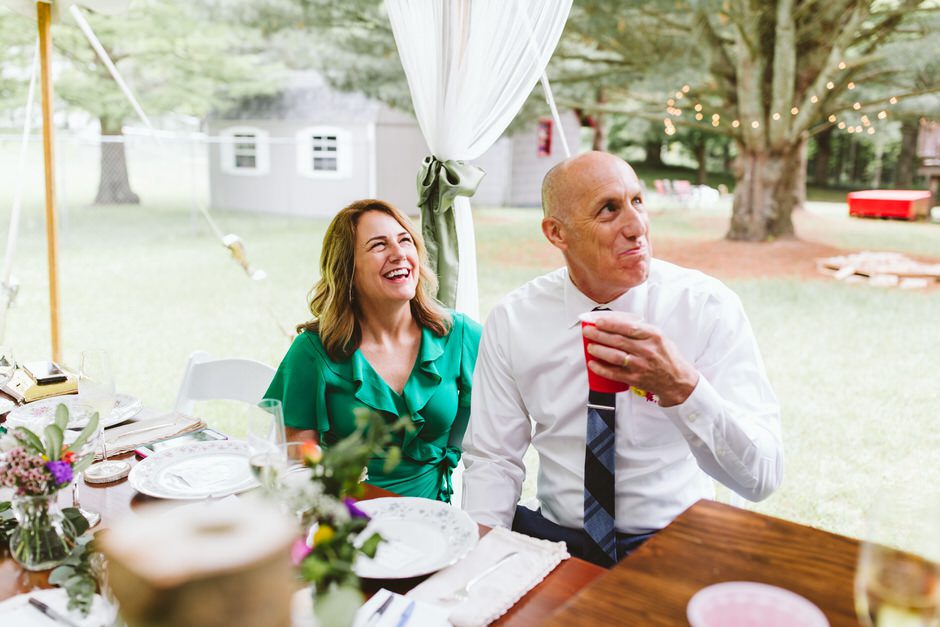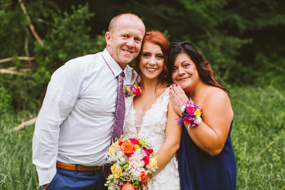 We didn’t hire a wedding planner, and we were sooooooo ridiculously moved by how willing and enthusiastic our family and friends were to help out with our big day. Part of the reason we loved Shagway, was because it offered a beautiful canvas for us to craft our outdoor wedding the way we’d envisioned it. With that said, ALL of our decorations were transported via five vehicles and one very long trailer all the way from Kalamazoo or Battle Creek, Michigan, where our parents live. The long trailer was used to transport eight stunningly beautiful farmhouse tables, handcrafted by the brides’ parents, Rick and Tammy Bicknell. So, to simply say that blood, sweat, and tears went into making our wedding such a perfect day would be an understatement. Our wedding day was the result of hard labor, months spent planning, and some very memorable weekly dinners at Sawall’s of Kalamzoo with the grooms parents, Jeff and Lori.