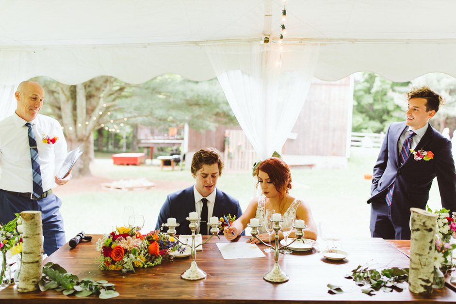 The ceremony was absolutely perfect. Even though we did a first look, it didn’t keep us from tearing up a bit! We were incredibly lucky to have such helpful, and hands-on family members taking part in our big day. My Dad, Jeff, was my Best Man, Sydney’s brother, Ricky, was her Man of Honor, our cutie baby nephew, Leland, was our ring bearer (with my sister and brother-in-law, Courtney and Nat, acting as co-ring bearers (; ), and both of our mothers were the most lovely and beautiful flower girls you’d ever laid your eyes on. One of our best friends, Christian Elliott, acted as our officiant and he did an incredible job – balancing light-hearted humor with his own thoughtful insights on our relationship. Another one of our best friends, Alex Tobin, did all of the sound for our ceremony AND reception. After we shared our vows beneath the archway handcrafted by Sydney’s father, Alex queued up “Lovers in Japan” by Coldplay as we shared our first kiss (we timed it so we kissed RIGHT when the main piano riff started). It was an awesome send off for our honeymoon which we happily spent in Japan (Tokyo, Kyoto, Osaka, and Hakone!).