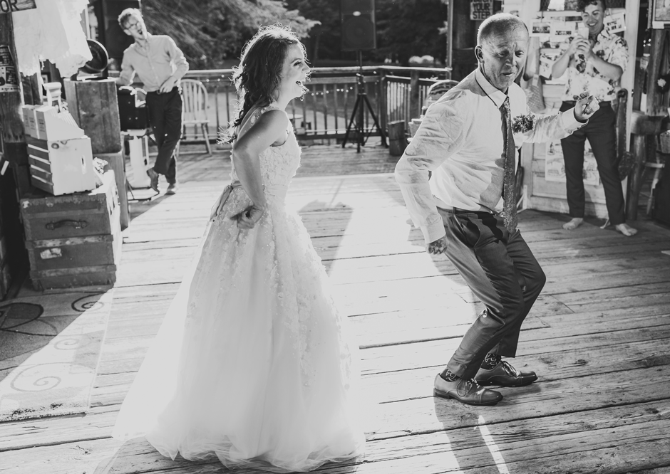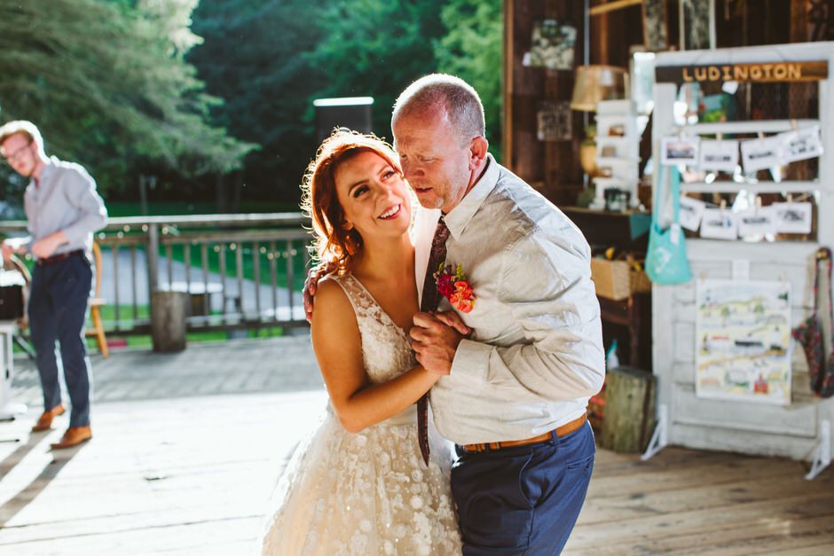 Andy and I also did not hire a DJ. We created a public and collaborative Spotify playlist months before, which our friends and family added songs to leading up to our wedding. Some of our favorites were “The Good Life” by Kanye West, “Yeah!” by Usher, and of course, “Moonlight Mile” by The Rolling Stones, the song we chose as our first dance. Andy shared a dance with his Mom to one of their favorite group’s songs – the Carpenters’ “On Top of the World.” And last but not least, my dad and I had a blast choreographing and mixing our very own surprise mashup for our father-bride dance. We decided to make a go of it no more than two weeks before the big day, and I’m pretty proud of the end result. I loved dancing with my Dad to Marky Mark’s “Good Vibrations” as much as I loved dancing with him to Elton John’s “Tiny Dancer.”