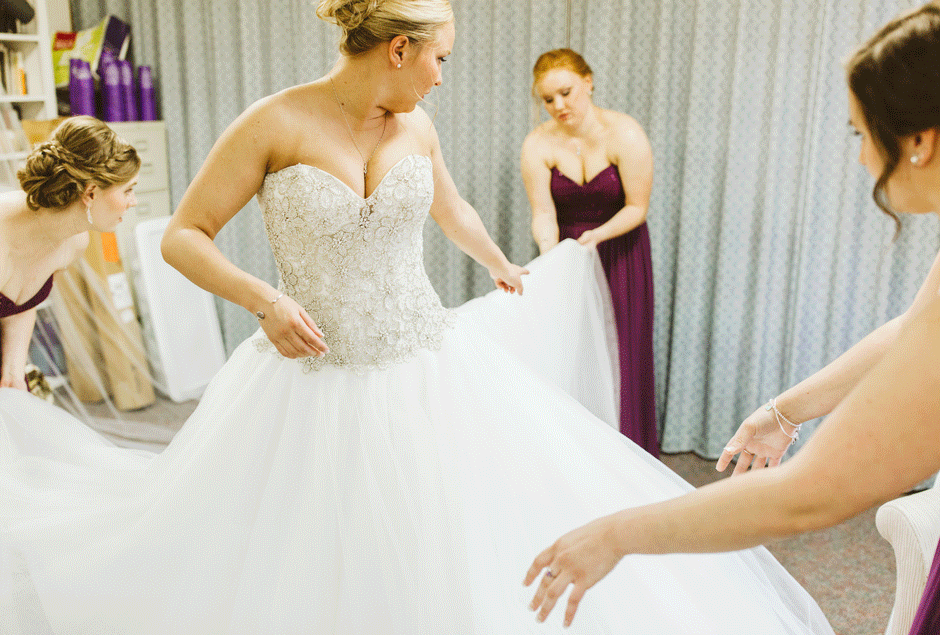 Ever since I was younger, I had always dreamed about wearing a ball gown style dress (most likely from the Disney Princess collection) by Alfred Angelo. When it was time to start looking for my dress, I scheduled an appointment at the Alfred Angelo store in Grand Rapids, MI and picked out all of my favorite styles to try on during my consultation. The day before my appointment, Alfred Angelo announced their bankruptcy and closed their doors. I was devastated. As I drove to my parent’s house in tears, my mom scheduled me an appointment at a local bridal shop that carried the Alfred Angelo Disney Princess collection. The next day we went, and I found a dropped waist ball gown in that collection that I liked, but did not love. Because this seemed like my only chance to have my dream of being an Alfred Angelo Disney Princess bride come true, I purchased the dress off the rack. That night, I cried again: although I liked the dress, I did not love it.
