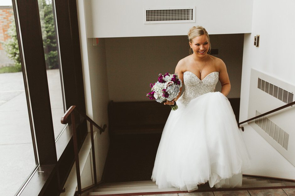 The next weekend, I went to a local bridal shop by my home in Naperville called A Joyful Occasion. The owner’s daughter, Kelly, was my consultant. After hearing my story, she pulled every dropped waist ball gown they had in their store. When I first put on the Kenneth Winston, I was surprised because it seemed like a dress I would never have picked for myself. When I came out of the dressing room, I told my family I was not a fan of the dress, but my dad said that he really liked it. Later on, I put the dress back on for my dad and realized that it was everything I didn’t know I was looking for. I loved this dress, and I felt like the princess I wanted to look like on my wedding day. Kelly and her mom, Susan, at A Joyful Occasion found my perfect dress and made my wedding day dreams come true. My dress made me feel beautiful and sexy on my wedding day, and Sean’s reaction when he first saw it is something I will never forget. 😉