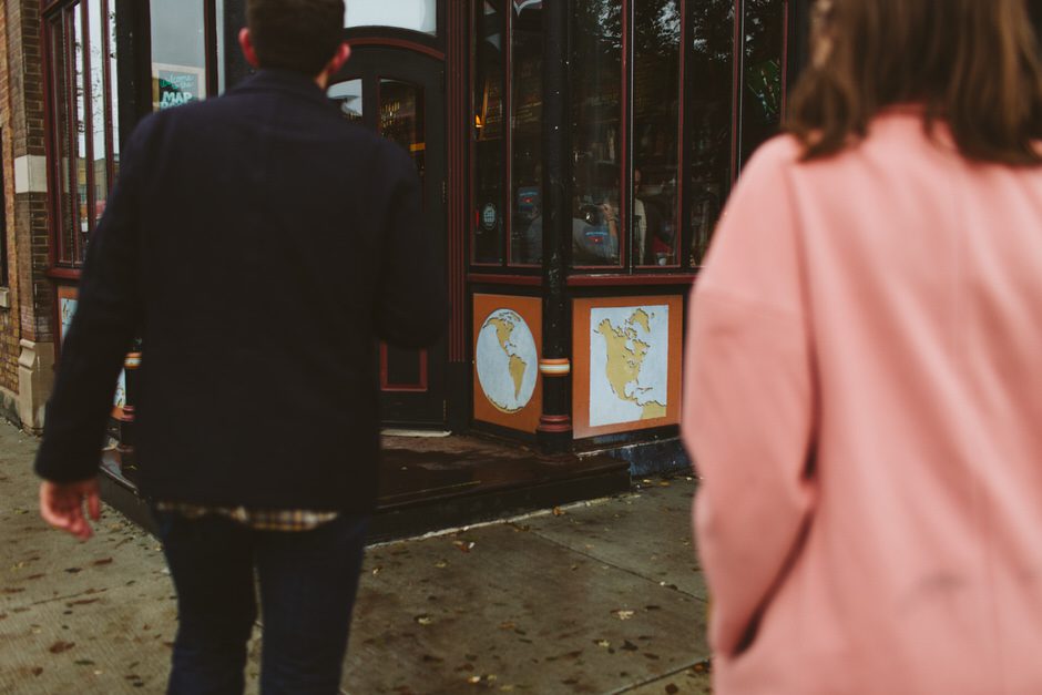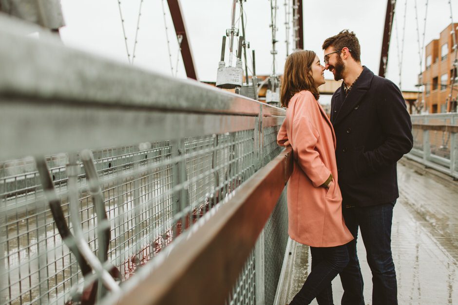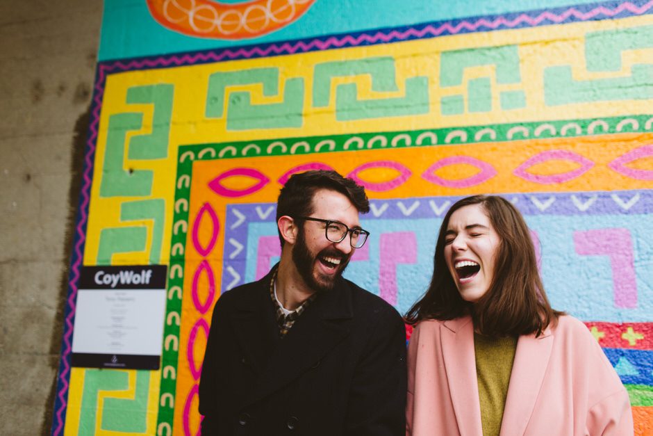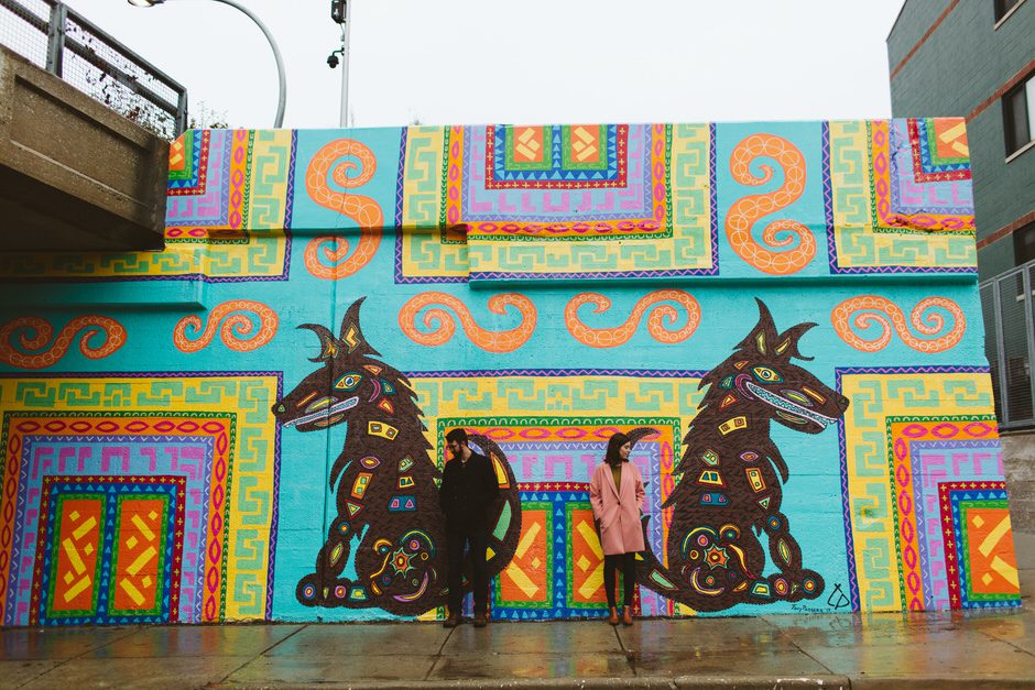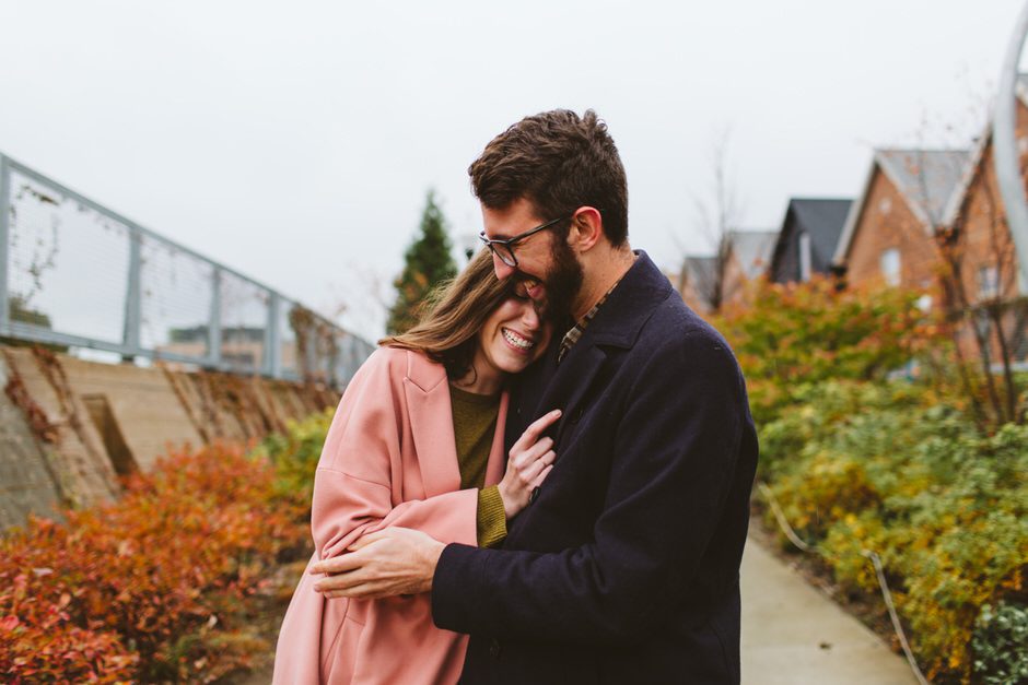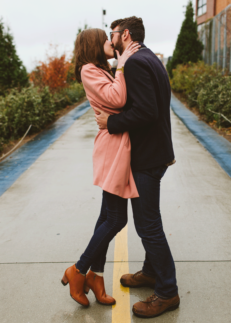 We scheduled this engagement session for what should have been a gorgeous November day. It poured, all dang day. Then, moments, before we were supposed to meet up it cleared up quite a bit and we decided to meet up around Brads neighboorhood to get to know each other and check out some rad murals around town. They are getting married next summer at one of my FAVORITE venues and I am so pumped to hang out with them again.