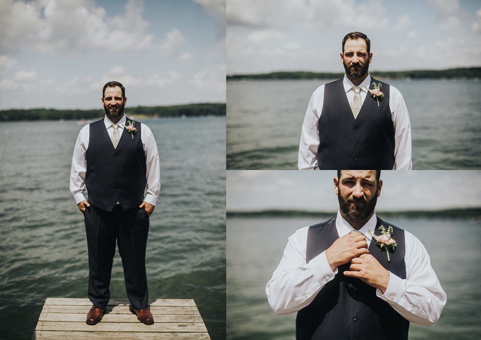 Ryan wore a navy suit that was purchased from Men’s Warehouse and tailored to him. We decided just the vest and tie without the jacket was best since it was July and slightly hot. Every man should have a suit that they feel great in! Ryan doesn’t love to get dressed up, but when the talk of wedding suit/tux came up, he knew right away he wanted to purchase a suit for himself instead of renting. I told him I didn’t mind if he wanted to change into something more comfortable after the pictures, but he stayed in “uniform” all night…I think he liked it!