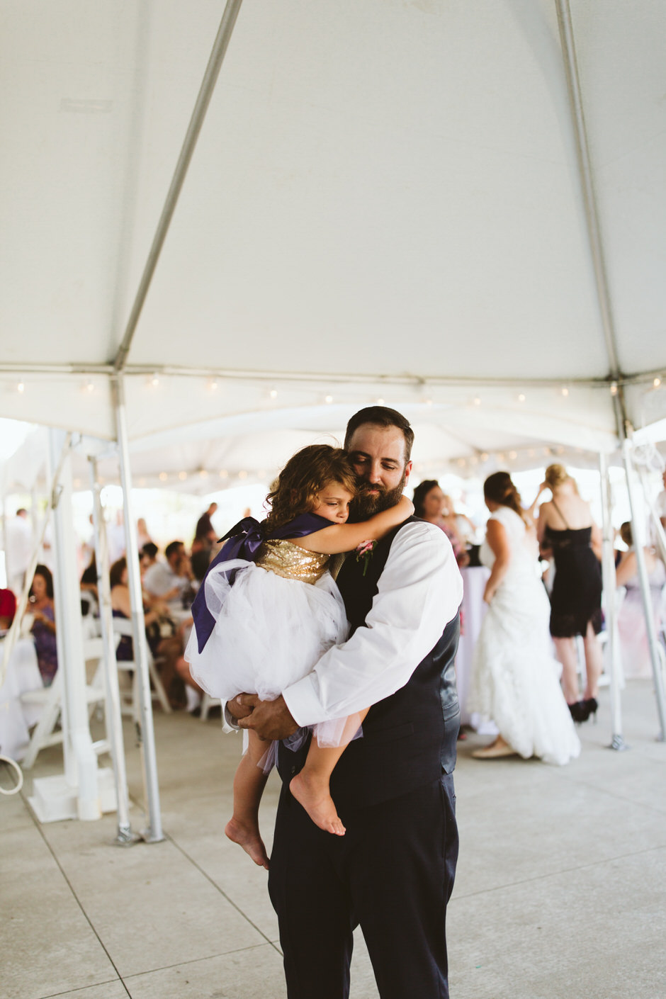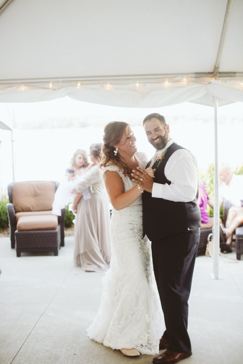 The reception was a blast! I don’t think I left the dance floor all night. So many of our friends and family were dancing and having a fun time. Some guests preferred to enjoy the lakeside breeze or take a boat ride. We just wanted everyone to have fun! We served donuts in place of cake and I heard that everyone loved the donuts. They were from Sweetwater’s Donut Mill in Kalamazoo and they were delicious! One of my favorite moments was the father/daughter dance not only with my dad but when Ryan and our daughter danced together and then welcomed all of the fathers and daughters on the dance floor. I also especially loved when all of our “Roll Tide” family (sorry, Rachel!) joined together for Sweet Home Alabama. So many fun memories!