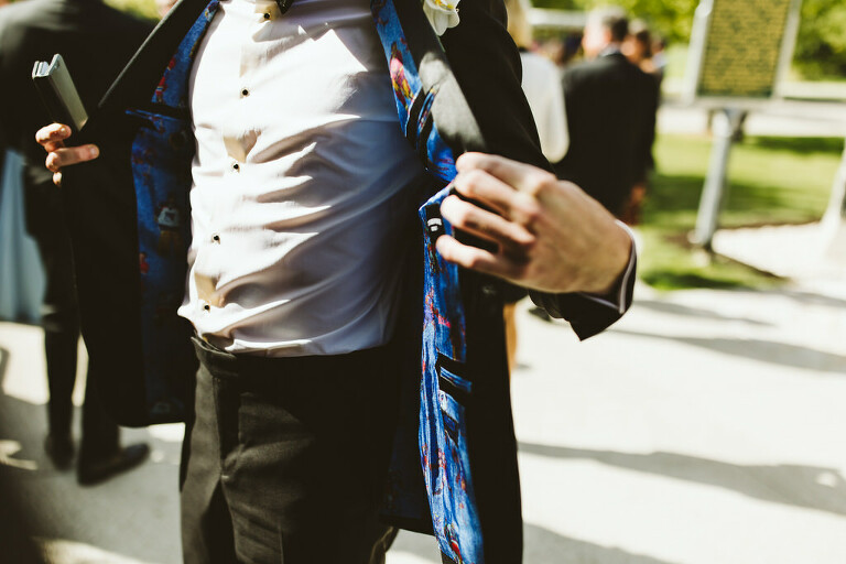 The suit I was wearing at the wedding was actually bought so I could officiate my sisters wedding, which I wore when I did. My ring was given to me by my mother and is my father’s wedding ring. My dad passed in 2016 so I meant a lot to have something like that incorporated into the wedding. Also, a fun side note, my silver pocket watch was a replica of Edward Elric’s state alchemist pocket watch from full metal alchemist.