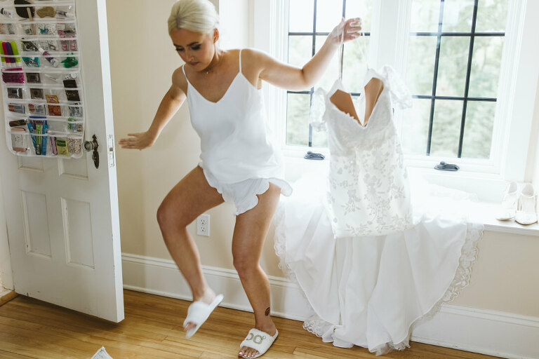 The dress was actually picked out about 30 days before the wedding and the alterations were finished about two weeks before. It was a crazy whirlwind of a mess getting everything secured, but in the end it was absolutely stunning.