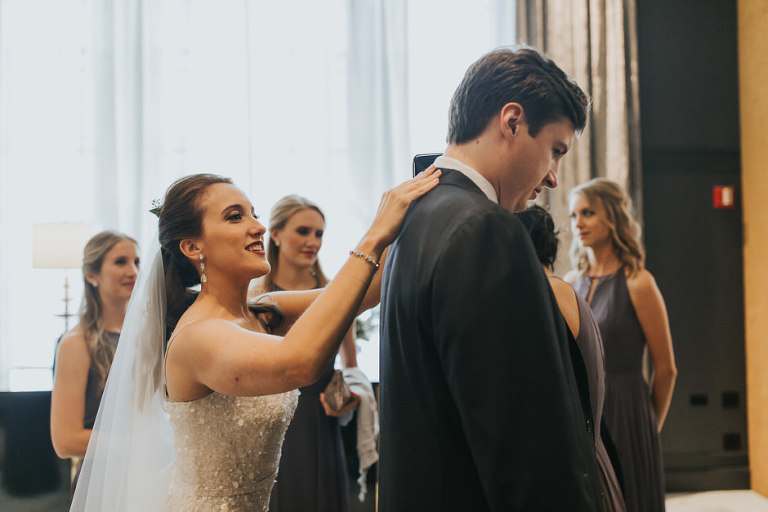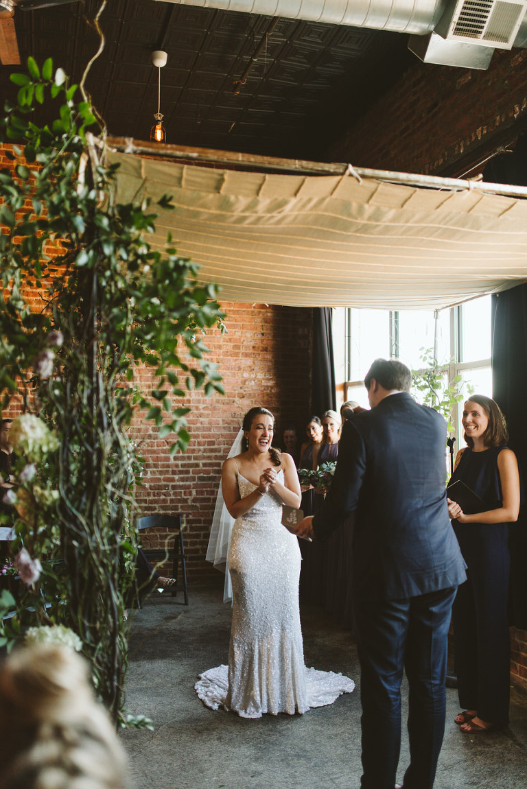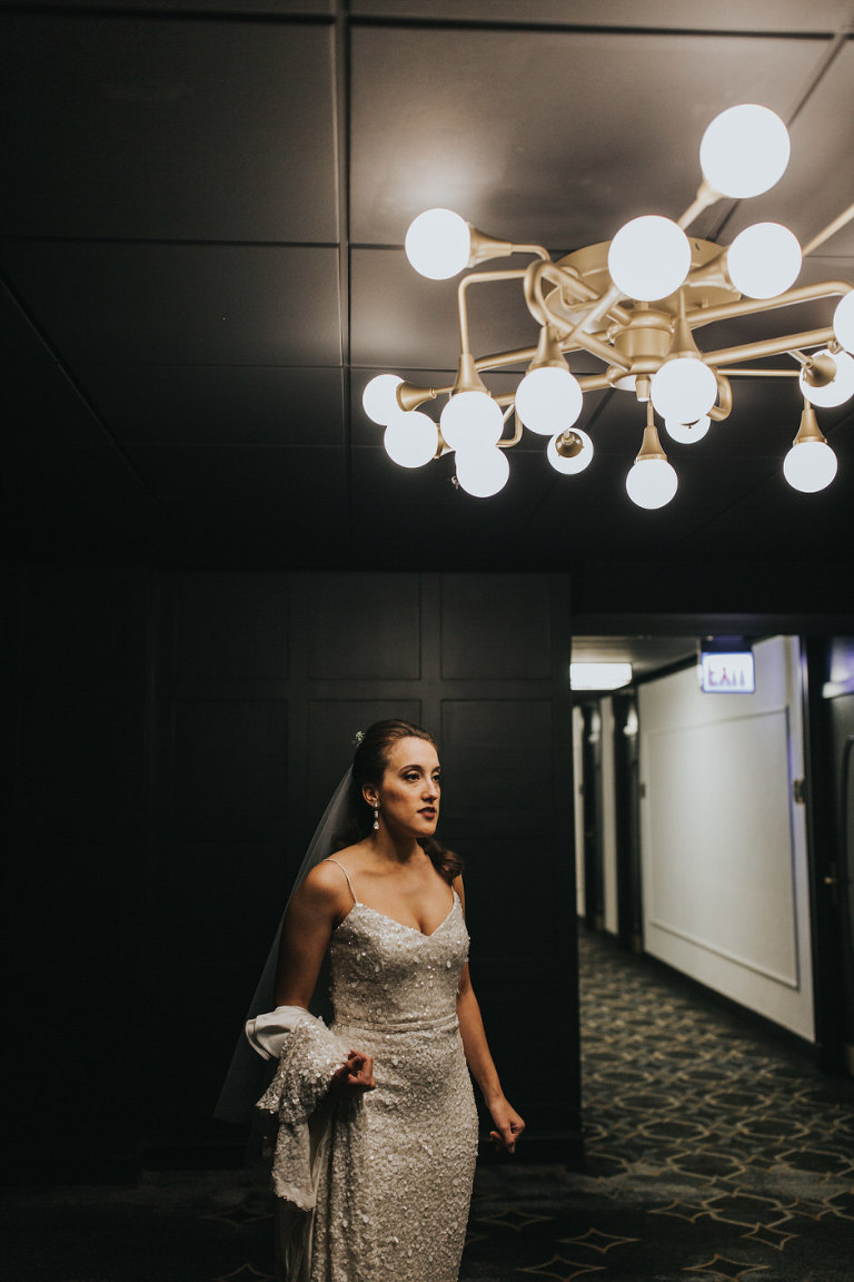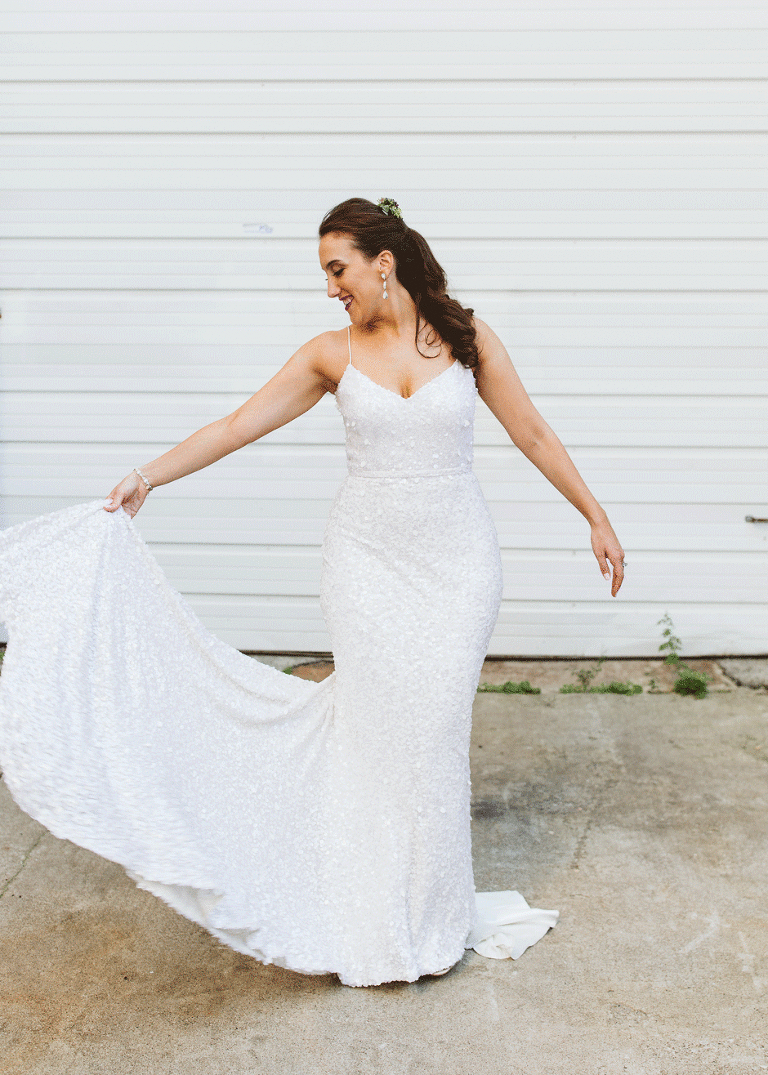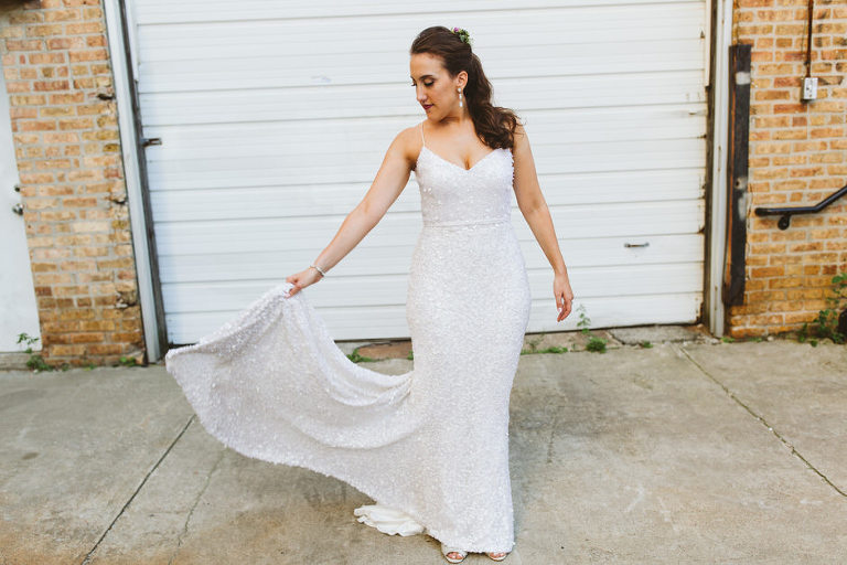 I do know that my dress was the right one in the end because it fit our indoor, loft-style Chicago wedding so perfectly. It’s Karen Willis Holmes from Bella Bleu Bridal and it’s the Anya gown. I felt like a bride and a movie star all night long!