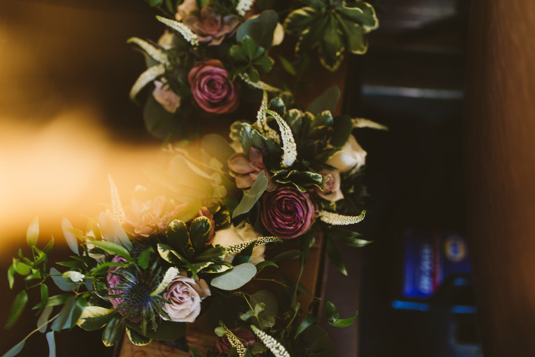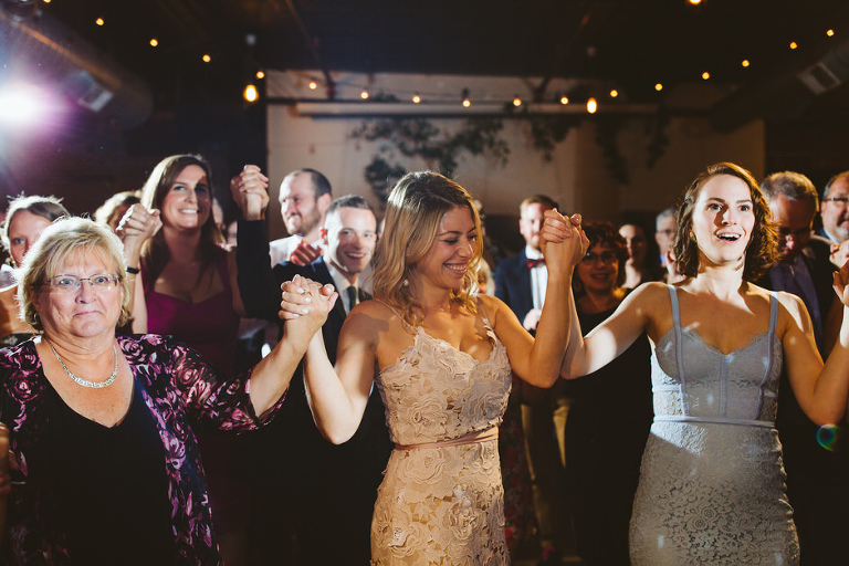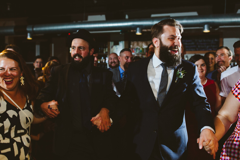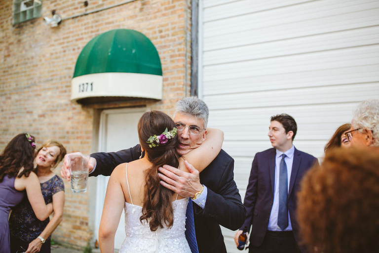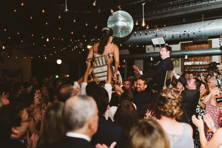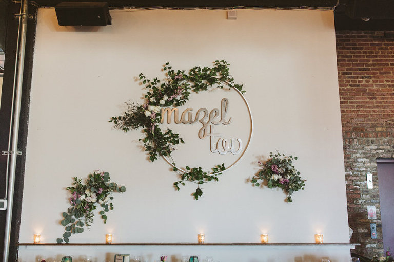 Our phenomenal florals/decor came from Jessica at Anemone Chicago and she was so great to work with. Our mouths literally dropped when we saw what she and our event coordinator, Natalie, did for us that night. Jessica made a stunning chuppah for our ceremony, a killer “Mazel Tov” wall piece, floral hair combs for myself and my sister/maid of honor and fun floral cuffs for the moms.