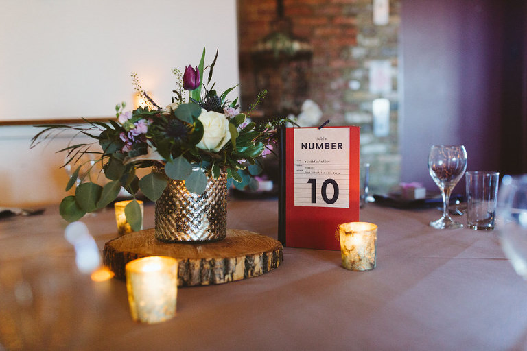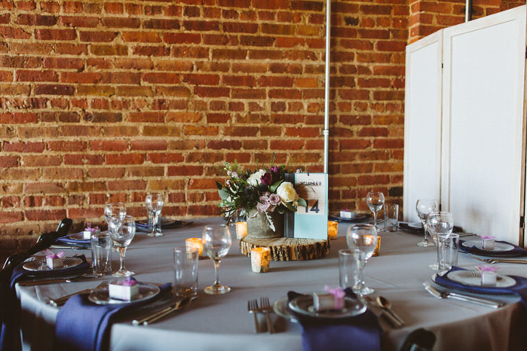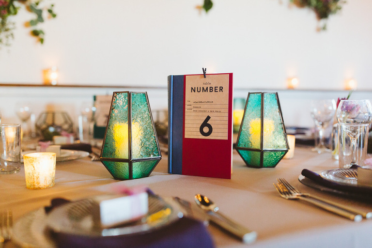 Our theme was “wedding”…which is to say we didn’t feel like we needed a theme. Lavender is my favorite color so we mostly just knew the palette we’d be working with. Our table numbers were library cards from Etsy attached to books from my dad’s collection (he passed away last year very suddenly so we looked for different ways to still incorporate him into the day).