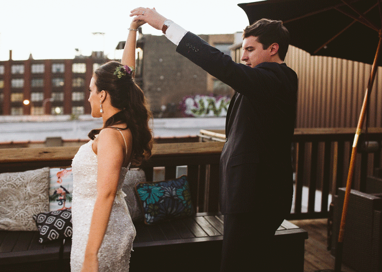 We toured a few venues in Chicago but Bottom Lounge felt right from the start. Natalie, the coordinator, made us feel so taken care of and made us feel like they were a well-oiled machine there. Turns out, we were right! Everyone kept remarking about how smoothly things went between our indoor ceremony (the train passing by the open windows behind us was a delight to the out-of-towners), the cocktail hour on the deck and then the family style meal and reception. They took care of us so well and we’re forever grateful. We highly recommend this spot to other couples!