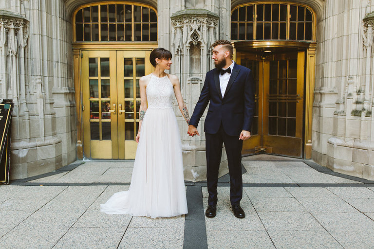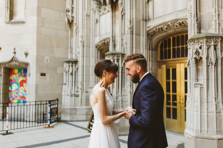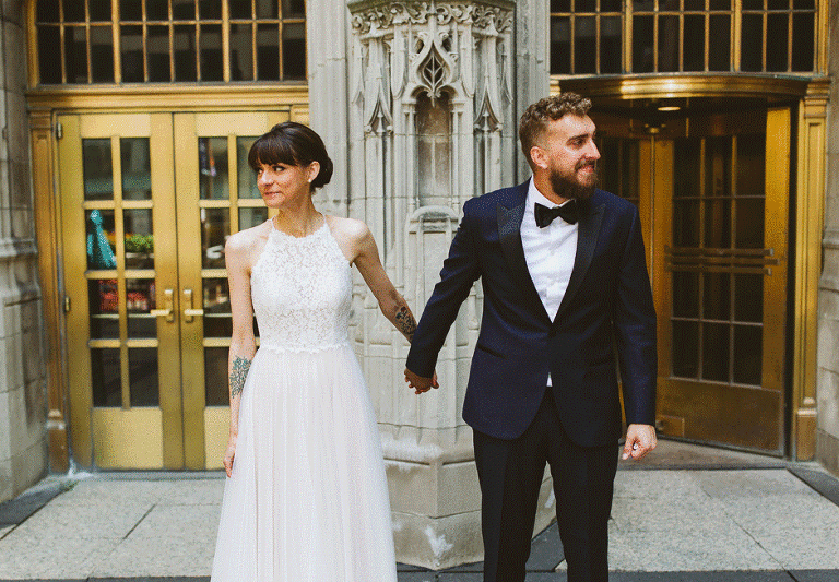 I found Bottom Lounge on a thrifty wedding website, so I was curious what weddings there actually looked like. That search led me to the Rachel Kaye photography website, and considering how much I loved the photographs–not to mention the venue–I figured, why not, maybe she’s available, so fill out that contact form. Best. Decision. Ever. From the engagement photos to the day of pictures, Rachel made us feel comfortable, happy, and excited. One thing I really wanted for the wedding photos was to have a first look photo that focused on the groom’s reaction, not the back of his head. I still get tears in my eyes every time I see the picture Rachel captured. I absolutely love all of the pictures. Side note, I also just want to be best friends with Rachel, because damn she’s awesome 🙂 (P.S. I want to be your friend too!!! LETS BE FRIENDSSS)