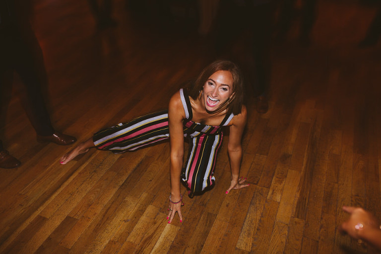 OMG—I wish the faulty aisle runner had been planned all along. The aisle runner was supposed to be unraveled after everyone had taken his/her seat. That didn’t happen, and two of my absolute favorite things from the wedding video are 1) Watching people struggle to unroll it just for Mike to eventually throw it to the side, and 2) When the beautiful and adorable Mackenzie decided she was over weddings.