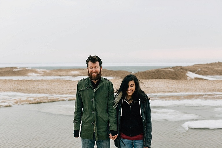 On my drive to the beach the sun was glowing and looking so wonderful and just as I pull up it goes away into this hazy maze of clouds… oh Michigan. I love you. While the Pacific Northwest may have beautiful views and mountains and things, there is nothing like the snowy/sandy left-over lake ice as a backdrop for portraits. It was pretty chilly and windy but these two were great sports. They also say they are awkward in front of the camera (here is a secret: I am awkward behind the camera, and the more awkward we are together the better it is I promise… oh and the photos turn out great too). It really doesn’t look like it. You two are naturals!