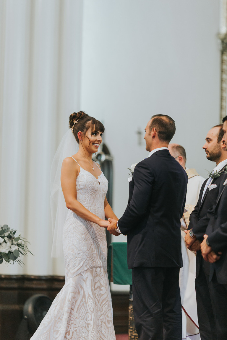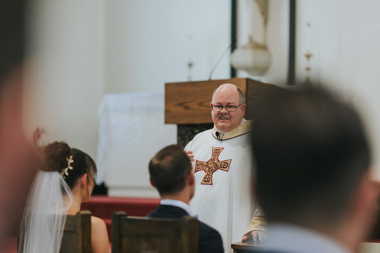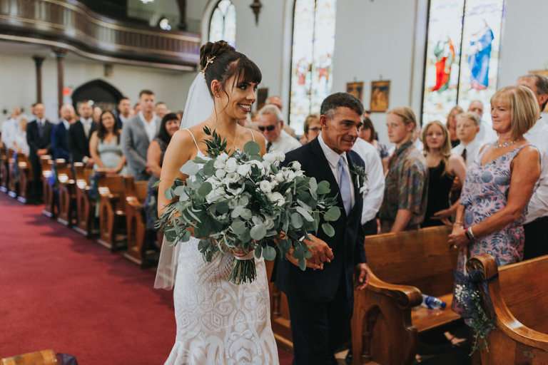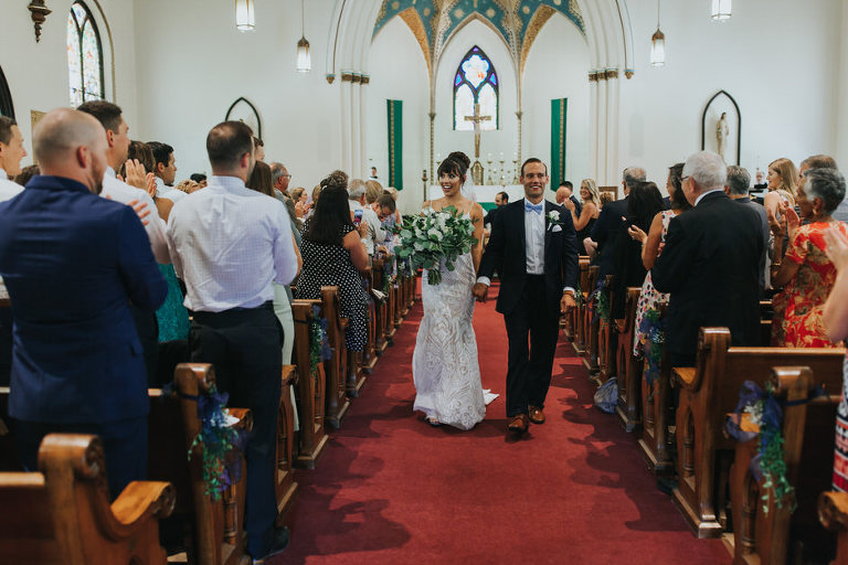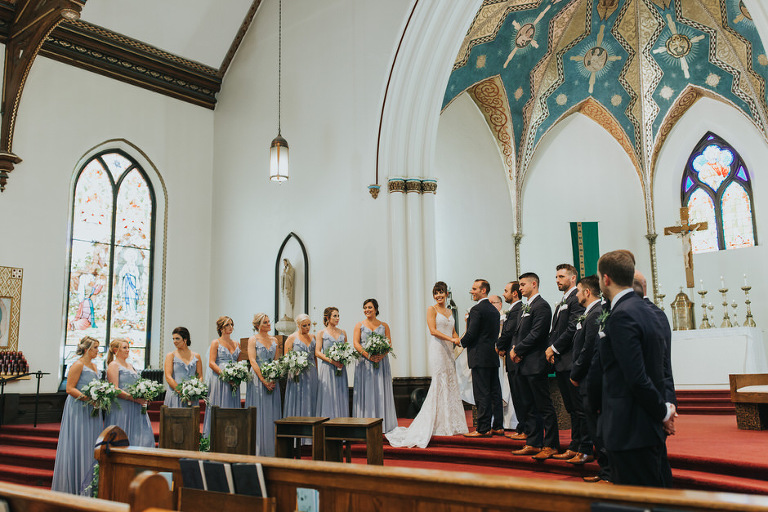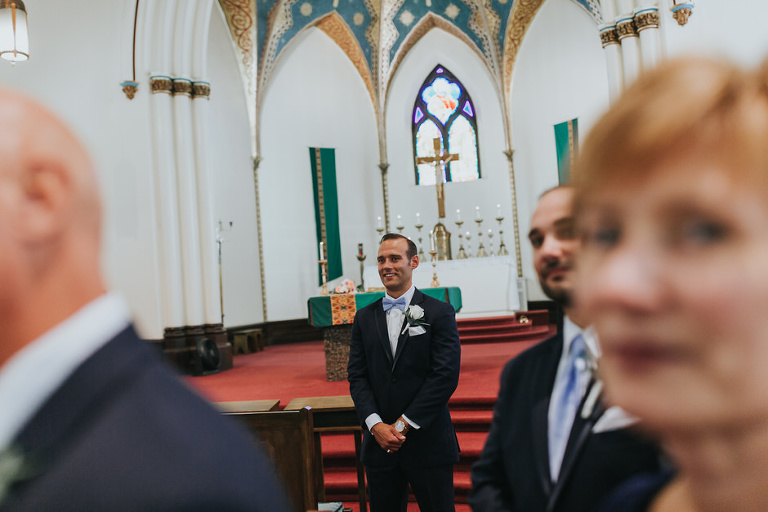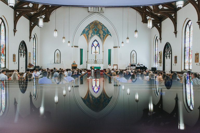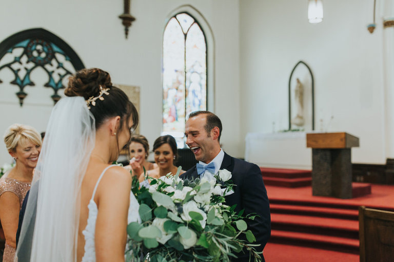 Ceremony was so special…….. but SO HOT. It ended up being around 90 that day and St. James does not have AC so things got sweaty up front! Our priest, Father Ron was incredible and made light of the heat and tried to keep it short but sweet to keep our day meaningful but moving. Walking down the aisle has to be the most nerve-wracking part of the day, but that moment of seeing each other for the first time at the Church was something I will never forget!