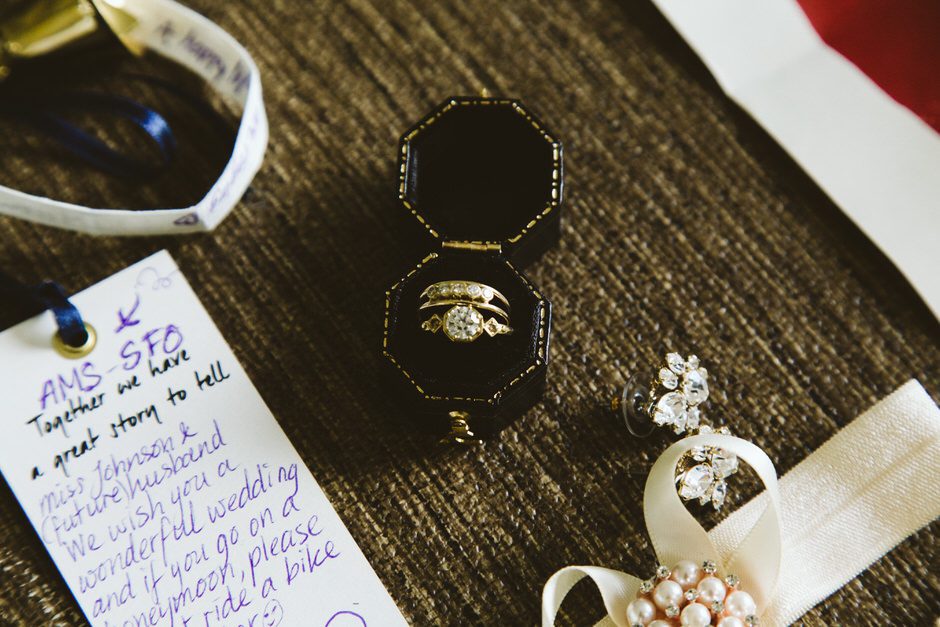 Our wedding day was on the 7 year anniversary of the weekend we met, which happened to be at a music festival in San Francisco. We were volunteering in the wine tent (already a good start because from day one, we knew we had the love of live music, wine and free festival tickets in common). Each of us were covering for friends who couldn’t make their shift, which basically means that fate brought us together. 🙂 Since that first serendipitous festival weekend, our love has grown and brought us through many adventures, including living in San Francisco, Berlin and now Amsterdam (which is our current home and a place very near and dear to our hearts). Although we’ve lived and traveled to many places, both of us have Midwest roots (Michigan & Ohio) so it was important for us to get married close to home and our families.