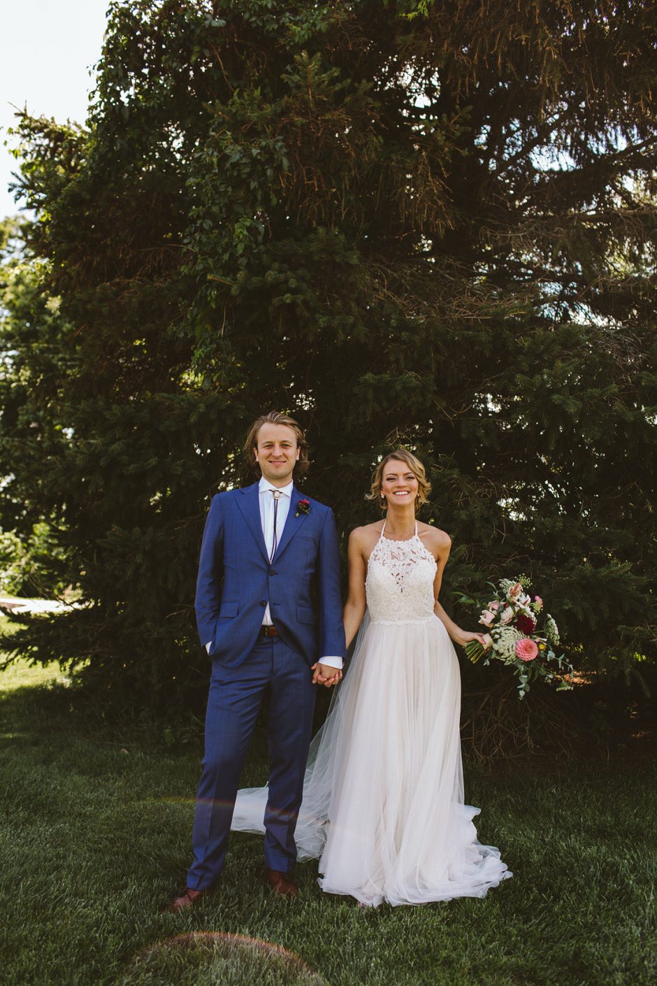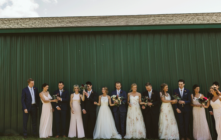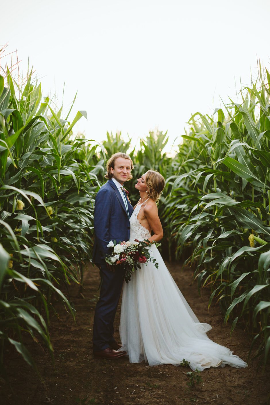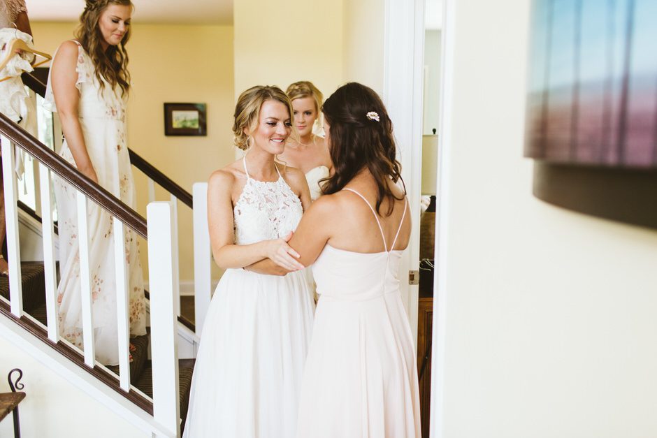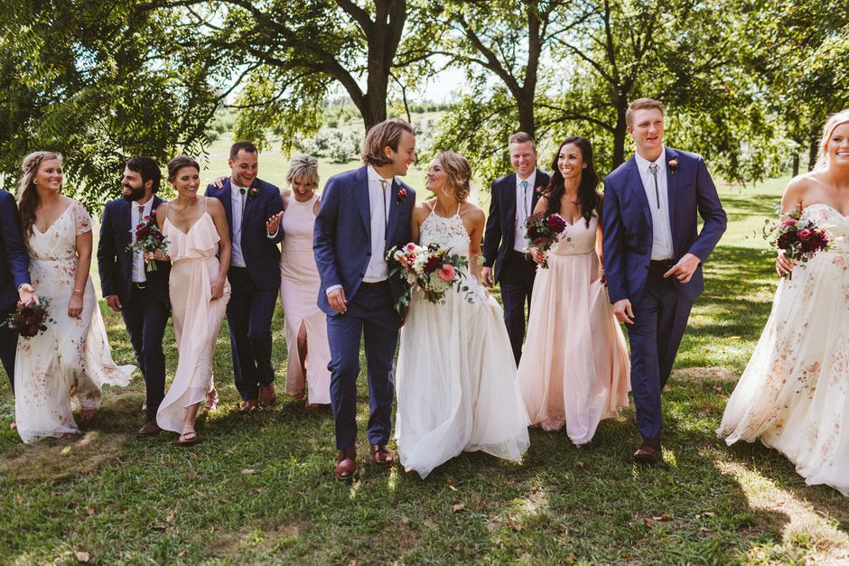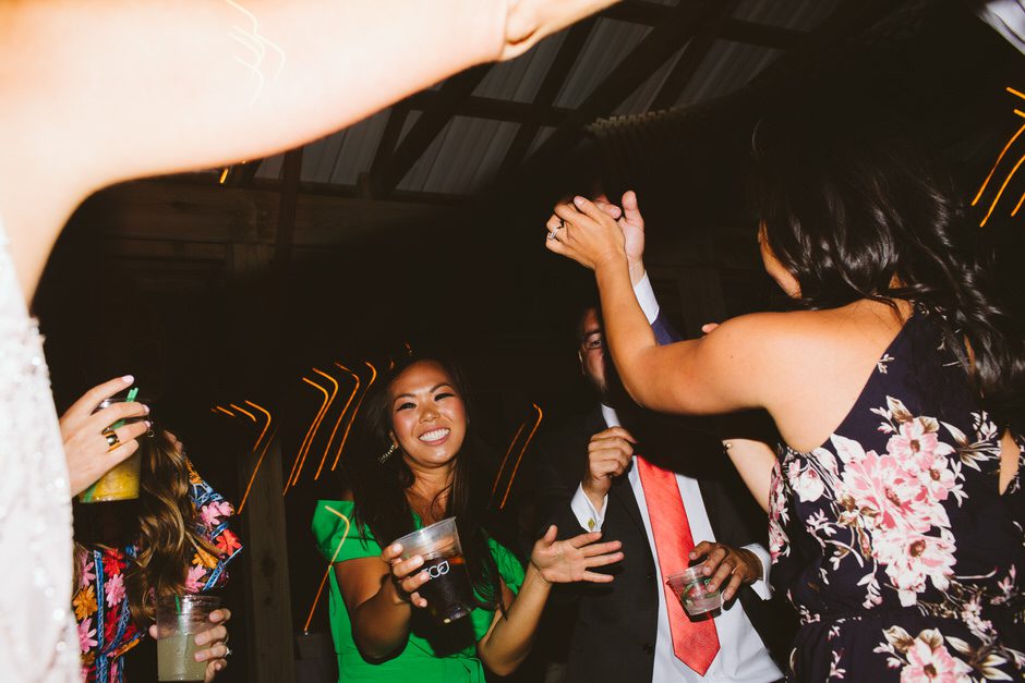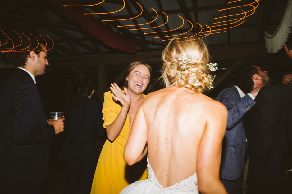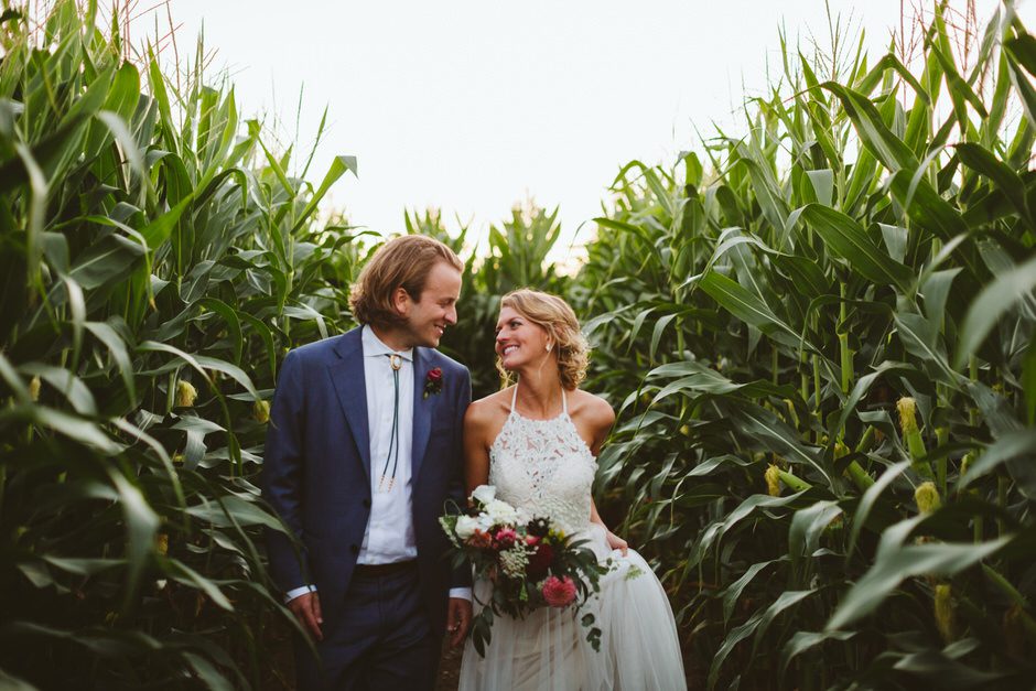 None of this magic would have happened without our amazing wedding planner, Jamie Kirby (Heyday Lab). We thought we were crazy people to plan a wedding from another continent, but Jamie had everything under control and actually made the whole planning process fun. From the very beginning, she helped us focus on what was most important to us, which helped guide our overall themes: personal, natural, and fun. We wanted our wedding to feel like an intimate festival, inclusive of our favorite things and learned traditions. This led us to hire two bands and asking our friend to DJ, catering *delicious* BBQ from Two Scotts BBQ, going for lots of greenery and wildflowers (Kaci from Damsel Floral nailed it), and keeping the material decor light since we were lucky enough to be surrounded by the natural beauty of Crane’s orchards and walnut grove (and the corn fields!).