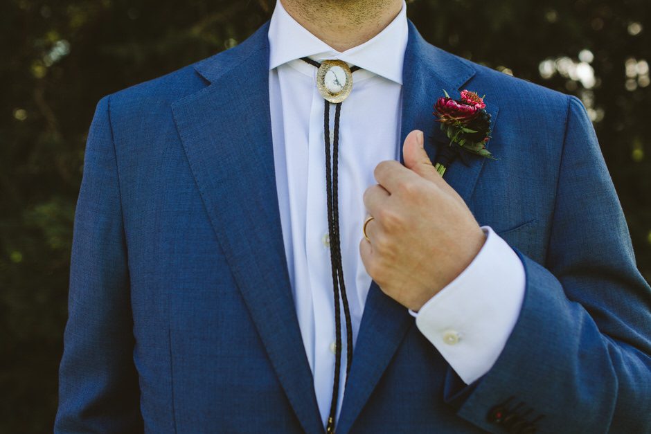 Jeff found his suit in Amsterdam at SuitSupply, and they were so helpful with helping him find the perfect style and fit. The main event was his bolo tie though. He found a vendor from Montana (CJ’s Rocks & Gems) who specializes in handmade bolo ties and Jeff ordered them for himself and his groomsmen, which turned out to be a special gift for the guys.