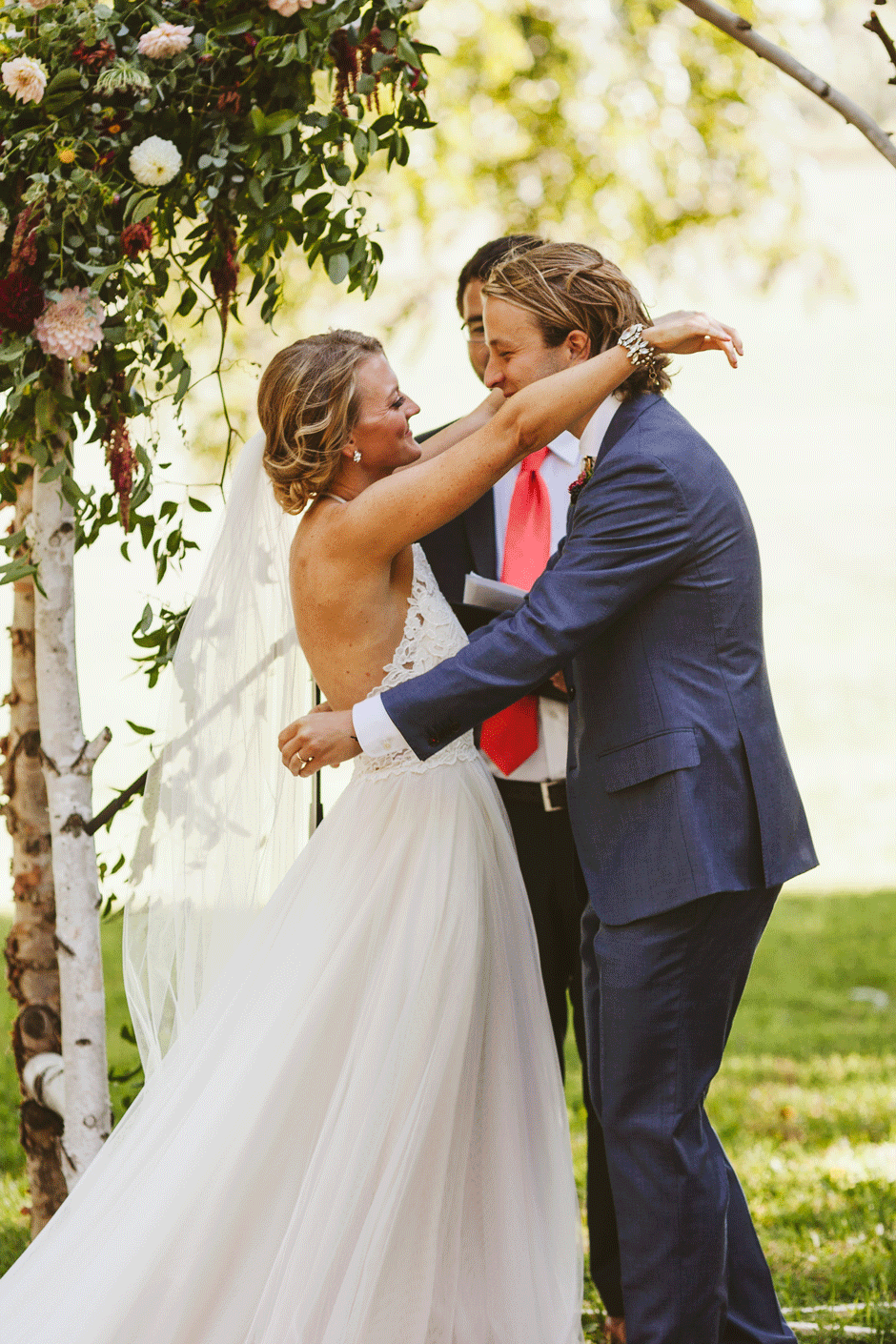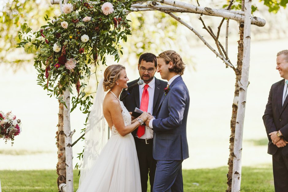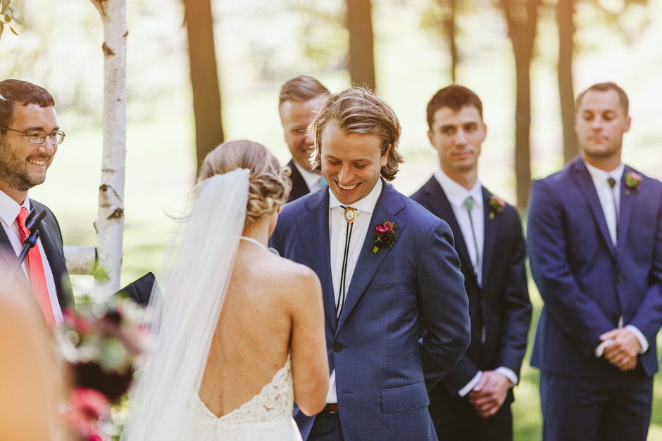 We wrote our own ceremony with our officiant (one of our dear friends) and our themes revolved around family, adventure and our connection to the earth and our loved ones. Not only was our officiant one of our closest friends, he’s also one of the funniest (pro-tip: ask your funny friend to officiate!) which helped set the tone of our light-hearted ceremony. We mixed family vows with our own personal vows, we each had one of our cousins read a favorite poem and incorporated a Native American wedding vase which was gifted to us by Jeff’s grandmother days before the wedding. All of this created a ceremony that was equal parts sentimental, special, nerve-wracking and funny at the same time.
