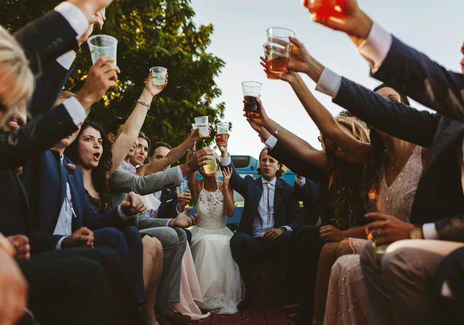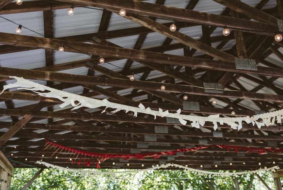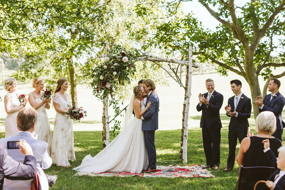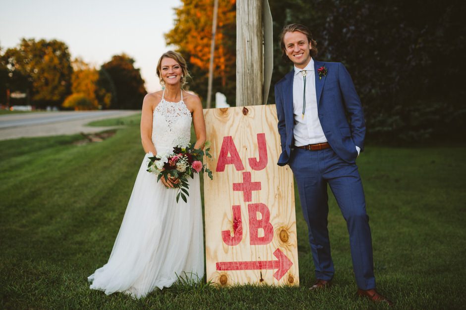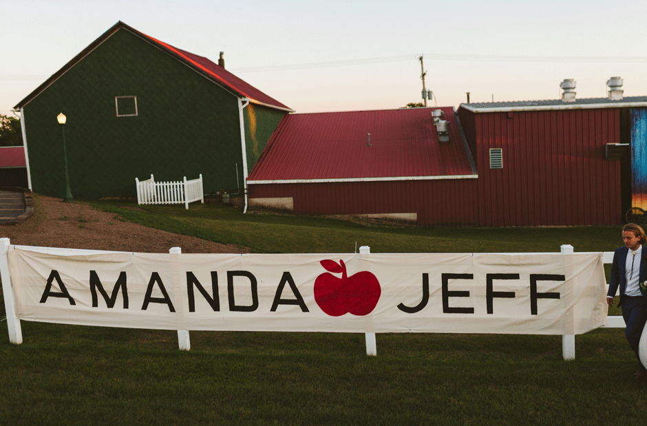 We got hitched and celebrated with BBQ, live music (including a surprise DJ set), homebrew, and pie at Crane’s Orchards in Fennville, MI. We really wanted a relaxed, outdoor venue and Crane’s was perfect. Amanda used to go apple picking in their U-Pick orchards every fall growing up, but we had no idea they allowed weddings until we stumbled across one of Rachel’s blog posts from a wedding a couple years ago. Once we found out that Crane’s also has a vacation rental on the property, we were SOLD! We were wed underneath the walnut trees and celebrated in their wooden pavilions, and were lucky enough to serve their homemade pies, apple cider donuts, and hard cider as well!