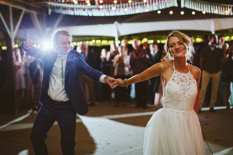 Because we were going for a festival vibe (honoring the day we met / we just really love live music), we decided to have three different live music sets. For our ceremony and cocktail hour, we hired a bluegrass band called Fauxgrass and they were amazing! They created a wonderful setting in the orchard for our special moment and they even followed us down the aisle after we were married which was SO fun! Next up, we had The Cheap Dates for dinner & dancing and they rocked it! They are an awesome two-man cover band out of Kalamazoo, Michigan and they really got our family and friends out of their seats and dancing to our favorites. Finally, a surprise to everyone (including the bride & groom), we had an amazing DJ set by JK Wilson to end the night with a bang. JK is one of Jeff’s best friends and a groomsmen, and we had asked him to play a simple playlist on his iPod… little did we know that he was planning a full DJ set, complete with glow sticks, special lights, and a fog machine, a custom lighted stormtroopers helmet, t-shirts with Jeff & Amanda’s faces printed on them, and amazing music that made the night one to remember.  (I am so freaking sad I didn’t stay longer to witness this magic….GAH!)