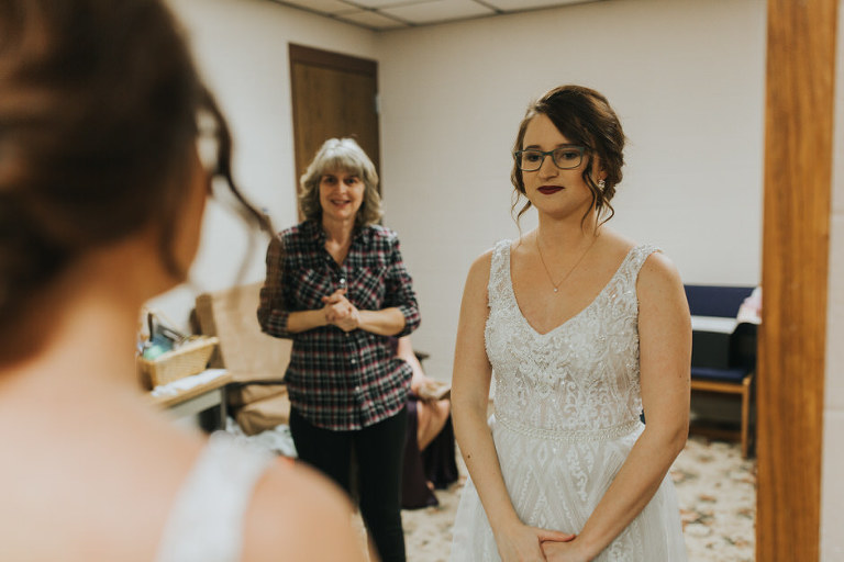 Kate, her sister, mother, and grandmother found the dress at Bridal Gallery in Grand Rapids. On a whim, Kate decided to try on a dress her sister picked out, even though they almost never like the same style of clothing. It was a good thing I tried it on because it was everything I didn’t think I wanted, but I loved it. Sometimes, you just have to go outside of your norm to find something fabulous.